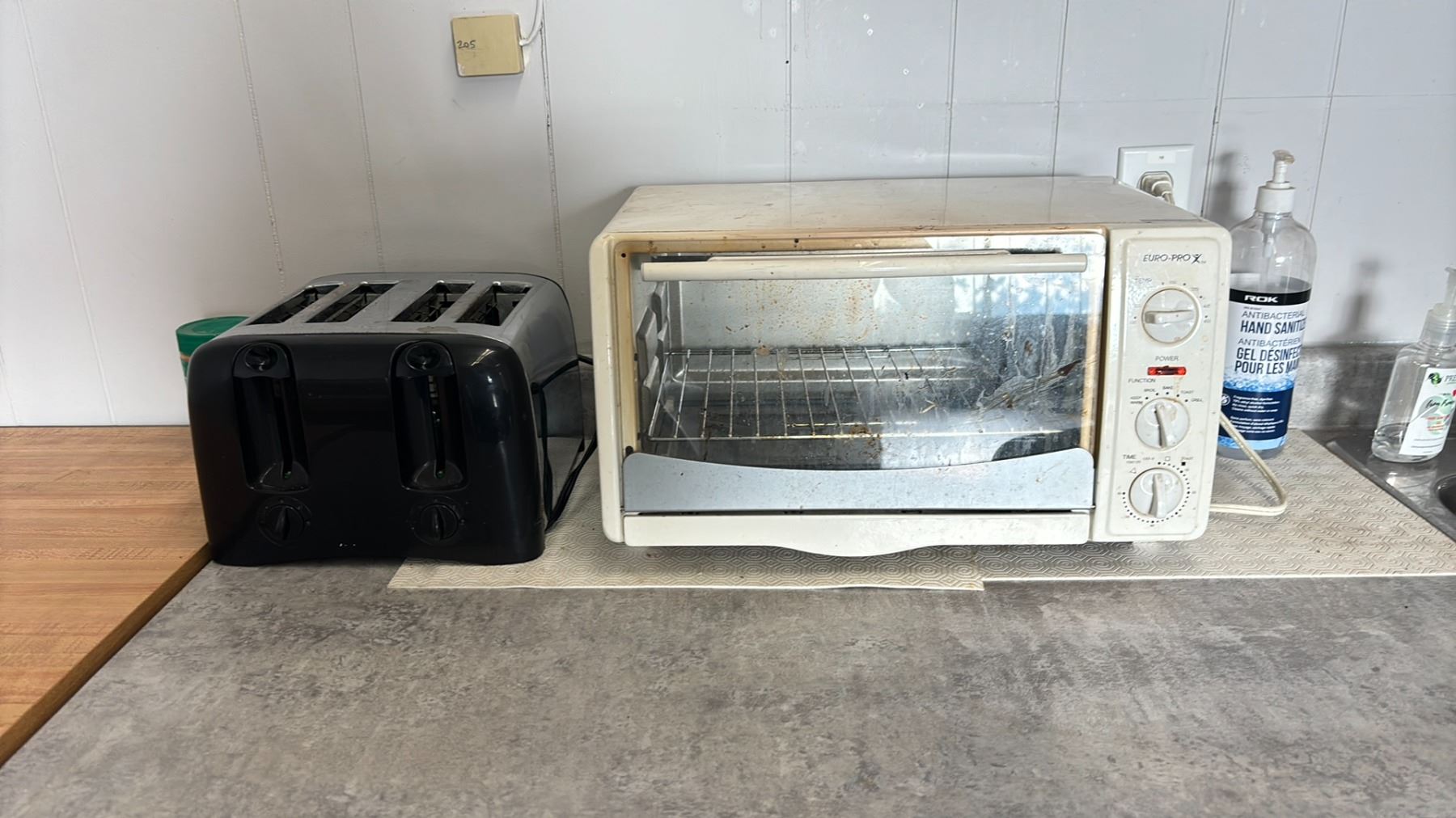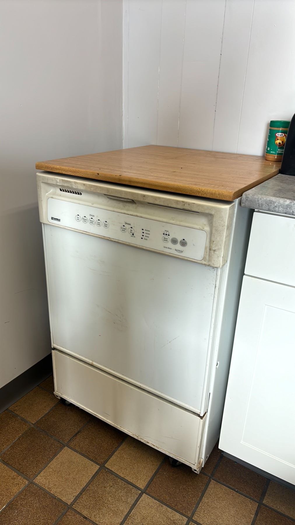 CONTENTS OF LUNCHROOM - APPLIANCES, MICROWAVE, TOASTER, DISHWASHER, FRIDGE, 2 CREDENZAS, GARBAGE