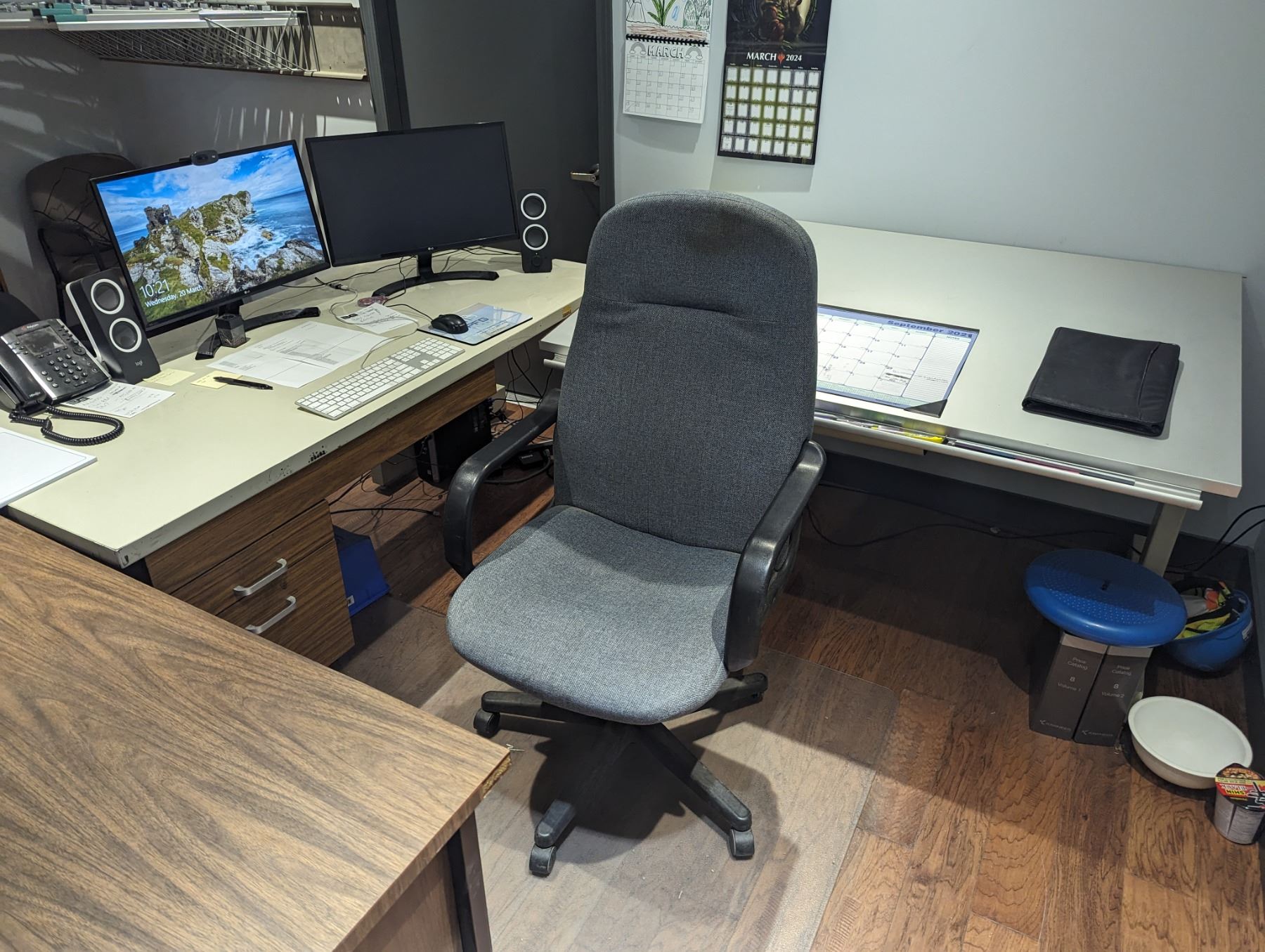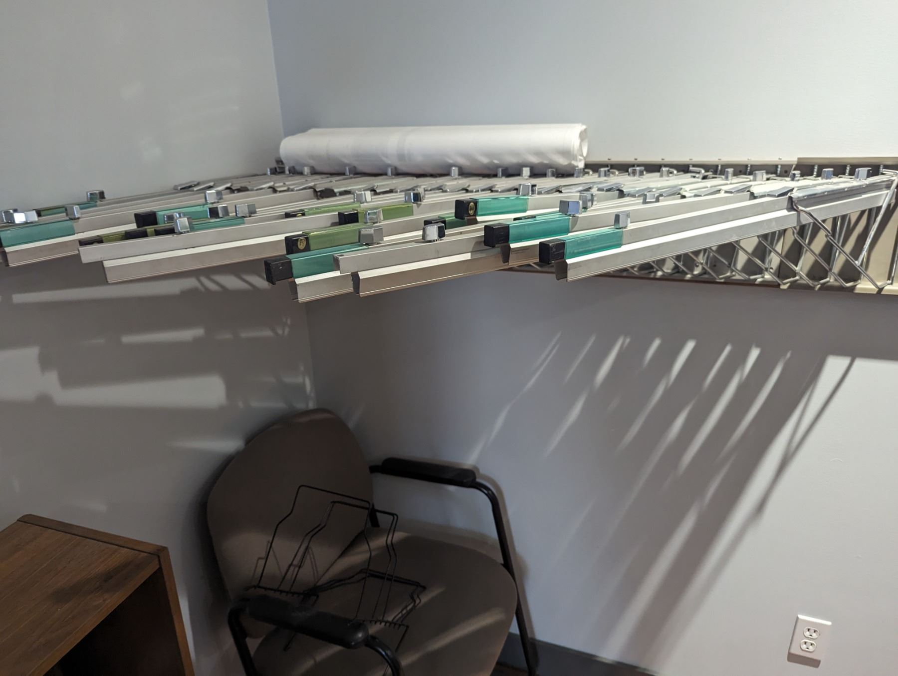 CONTENTS OF MAIN FLOOR MIDDLE OFFICE. FILING CABINET, WALL MOUNT PLAN HOLDER (BRING TOOLS TO REMOVE FROM WALL), CHAIRS, COAT RACK, ARCHITECTS DRAFTING/DRAWING TABLE, DESKS SMALL BOOKCASE, (DOES NOT INCLUDE COMPUTERS OR ELECTRONICS)