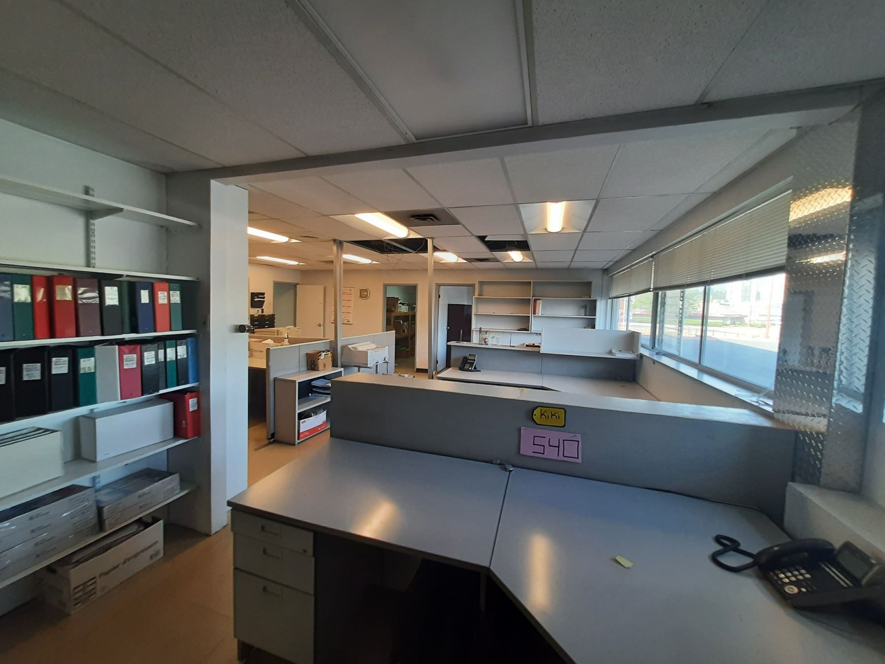 CONTENTS OF MAIN UPPER OFFICE AREA AND 2 STORAGE ROOMS INCLUDING 5 ASSORTED DESKS, PARTITIONS, AND INDUSTRIAL PRINTER COPIER