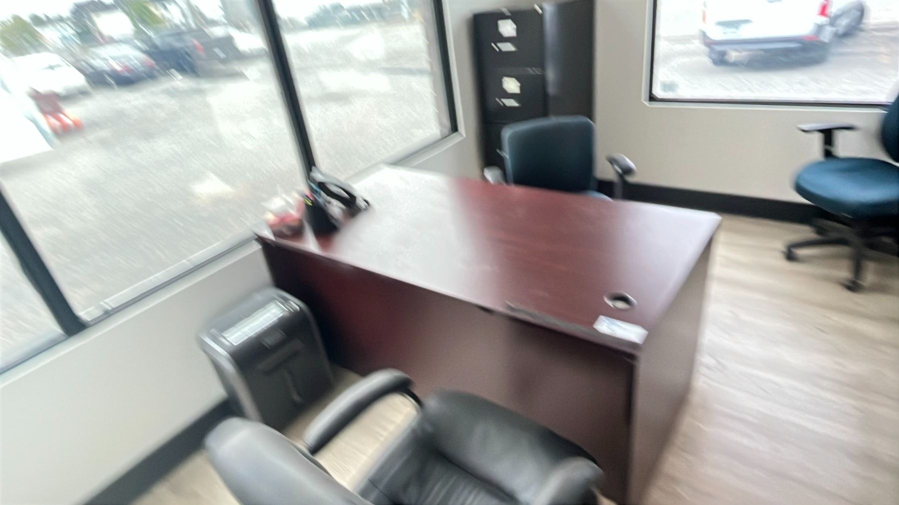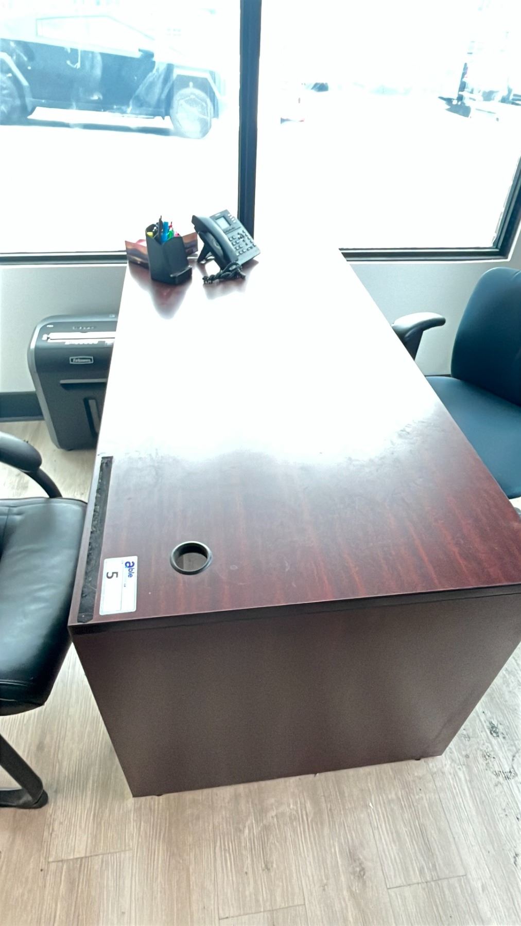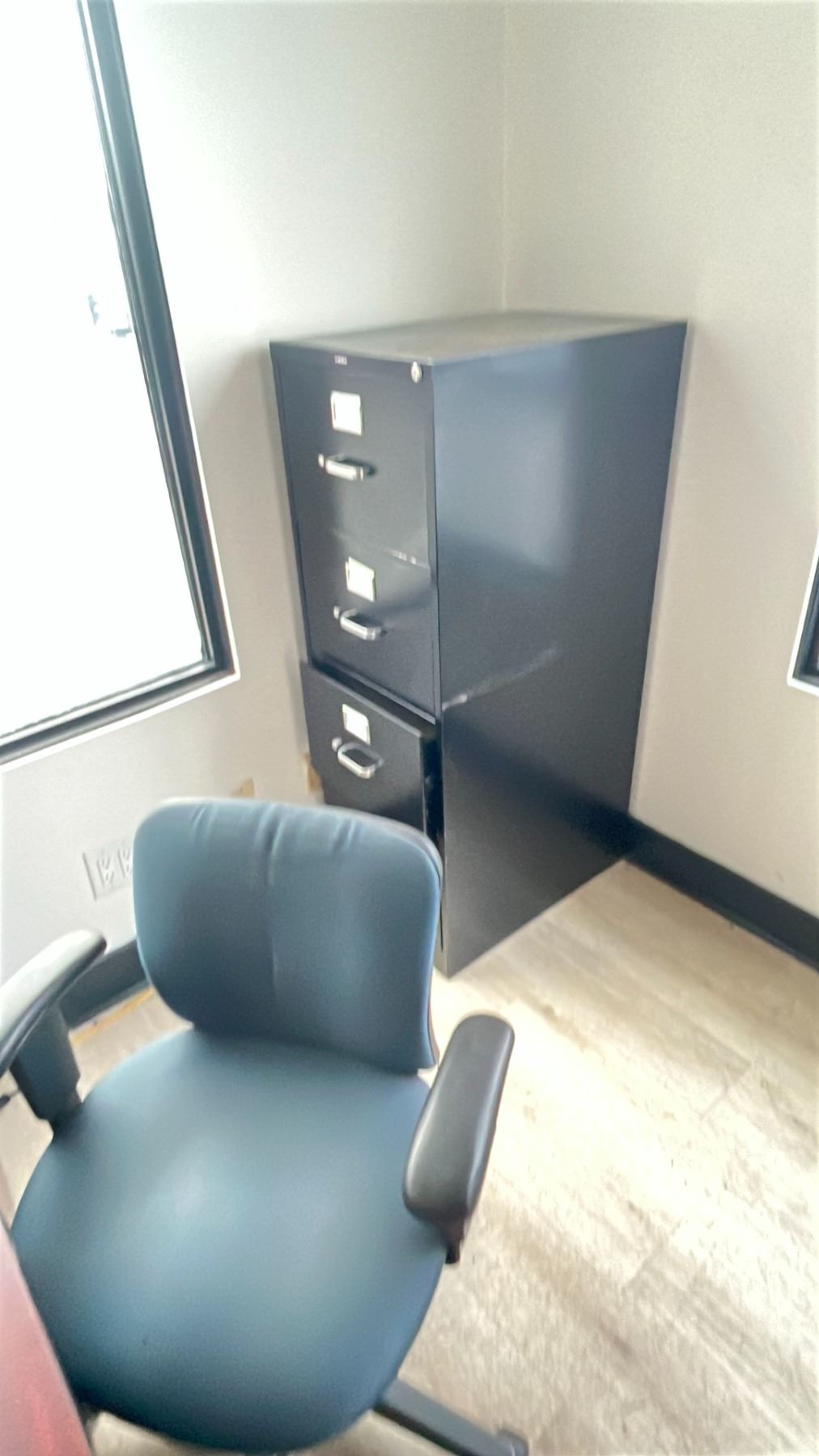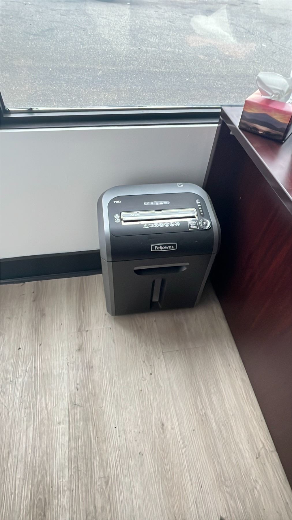 CONTENTS OF OFFICE - DESK, BOOKSHELF, FILING CABINET, (3) OFFICE CHAIRS & FELLOWS PAPER SHREDDER