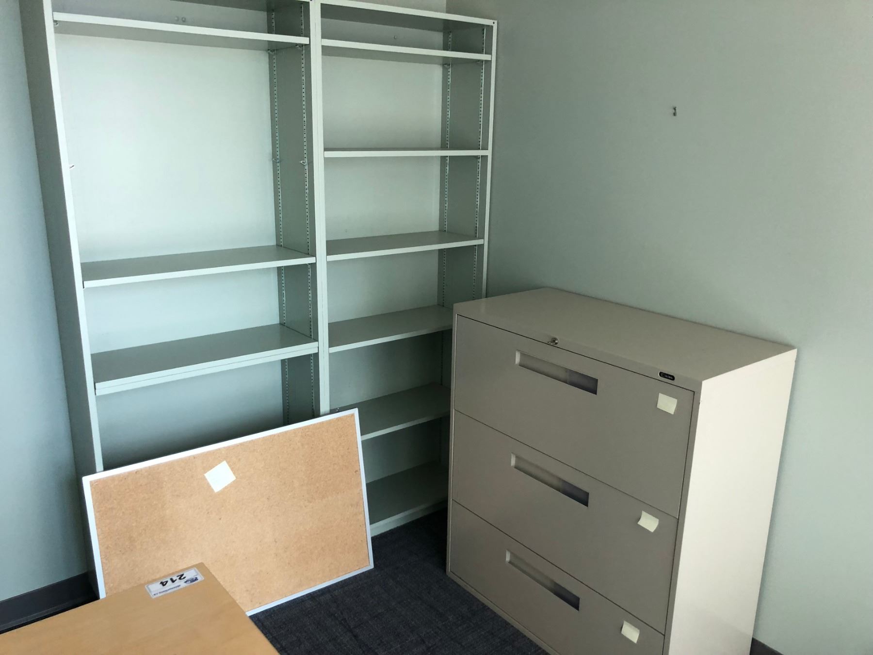 CONTENTS OF OFFICE INC. MAPLE COMPUTER DESK, 3 DRAWER LATERAL FILE CABINET, CONFERENCE TABLE, 2 TALL BOOK SHELVES