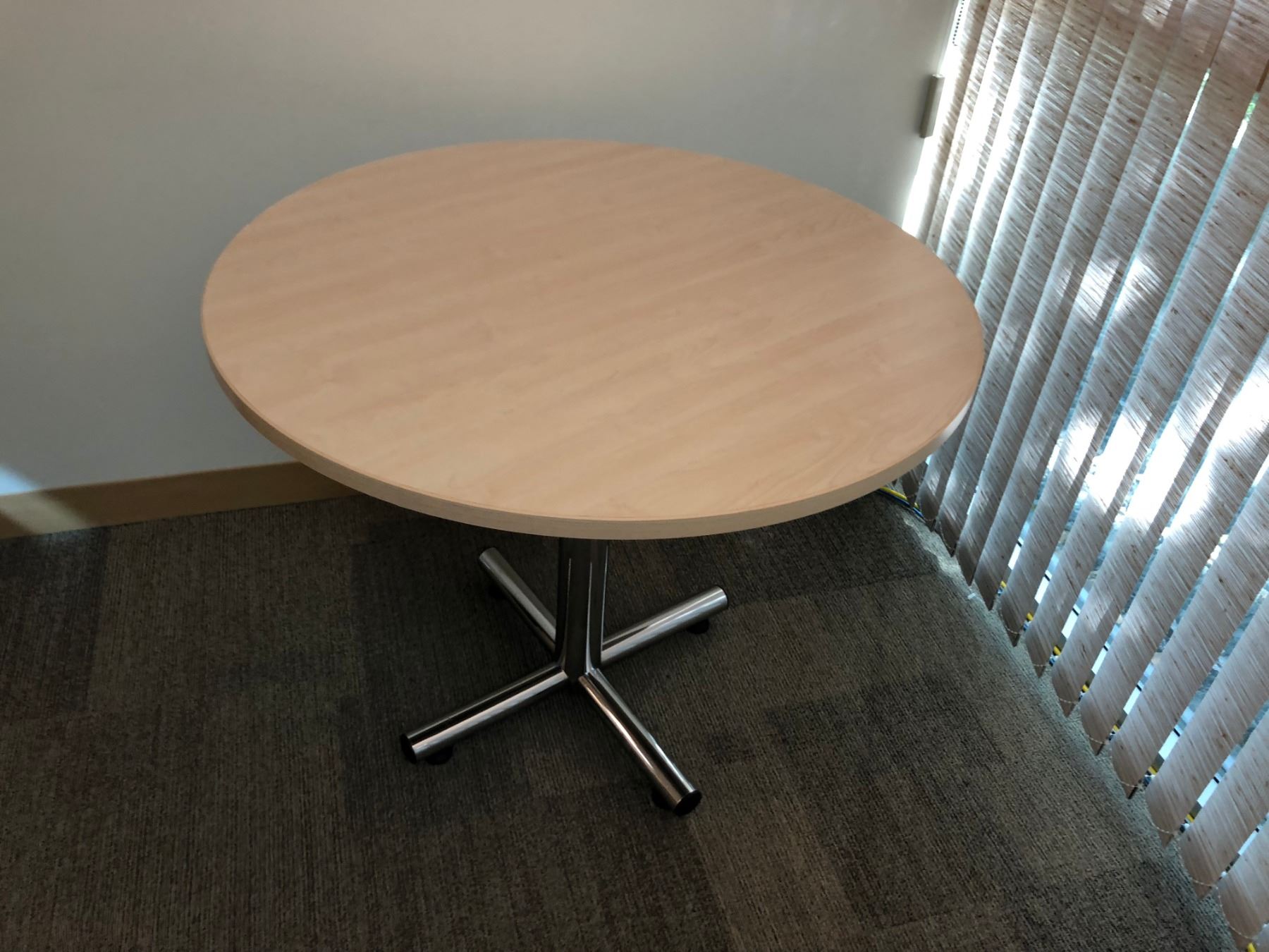 CONTENTS OF OFFICE INC. MAPLE COMPUTER TABLE W/ KEYBOARD TRAY, ROLLING PEDESTAL AND MAPLE CONFERENCE TABLE