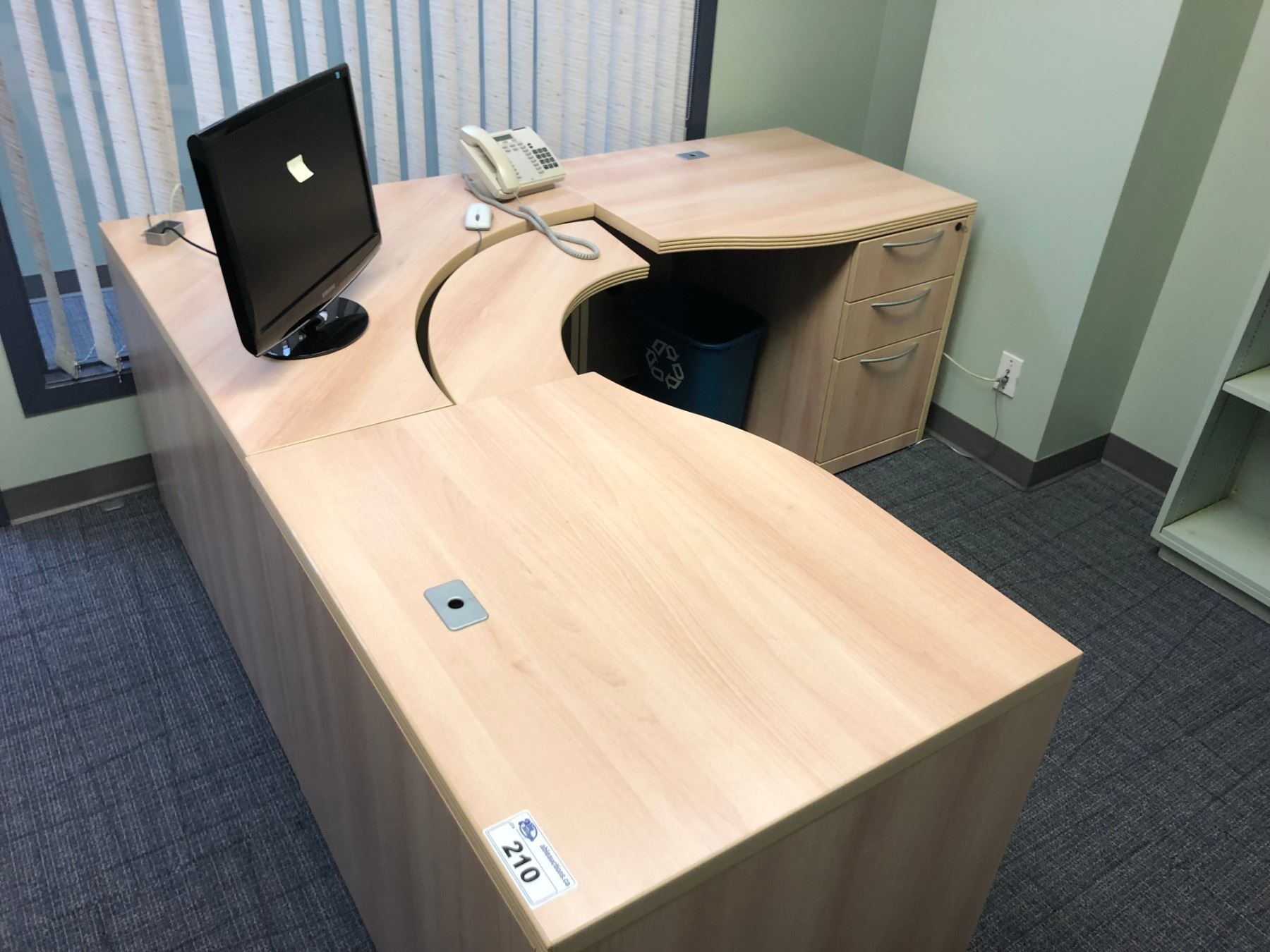 CONTENTS OF OFFICE INC. MAPLE CORNER COMPUTER DESK, 2 BOOK SHELVES AND MAPLE CONFERENCE TABLE