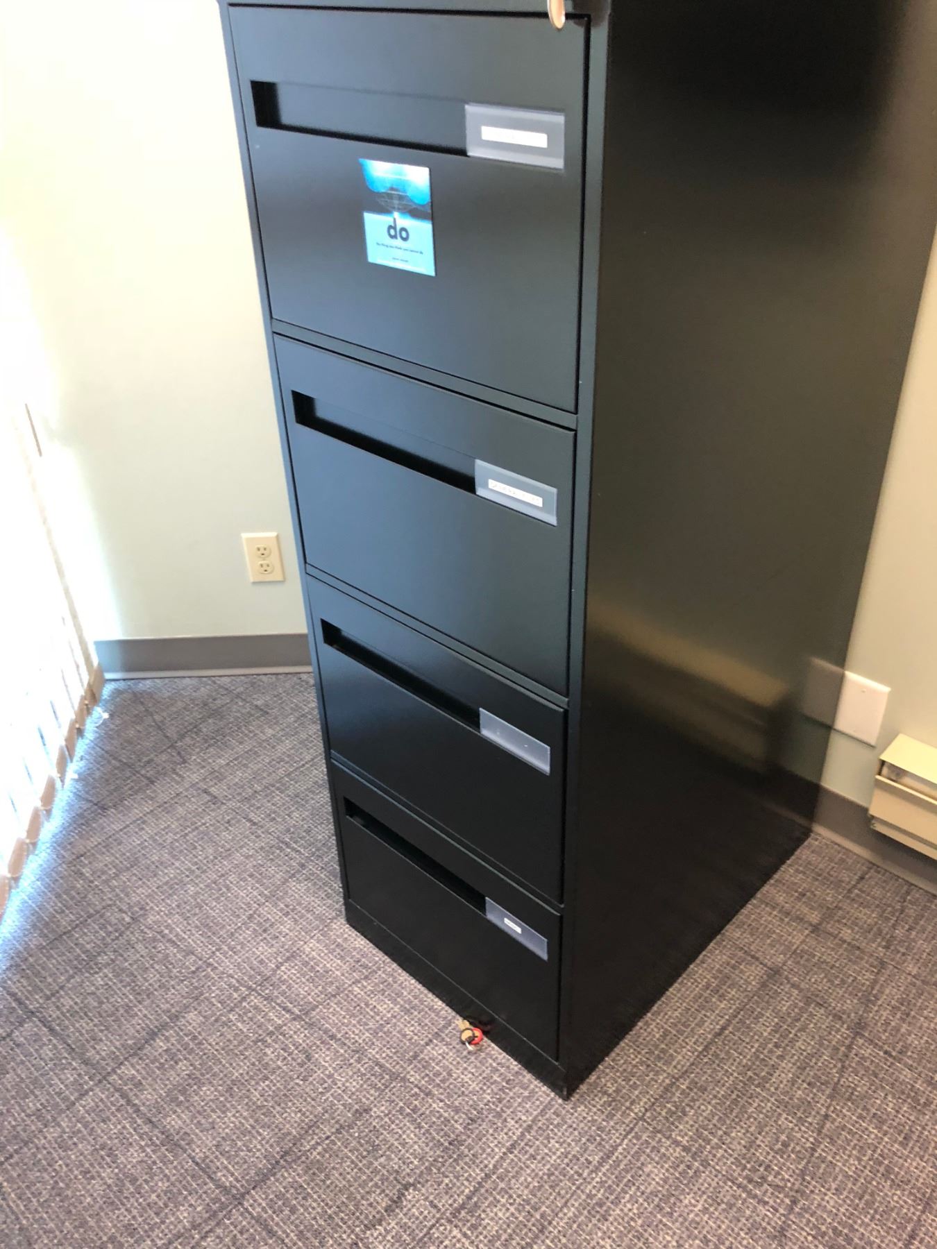 CONTENTS OF OFFICE INC. MAPLE CORNER COMPUTER DESK AND BLACK 4 DRAWER LEGAL FILE CABINET