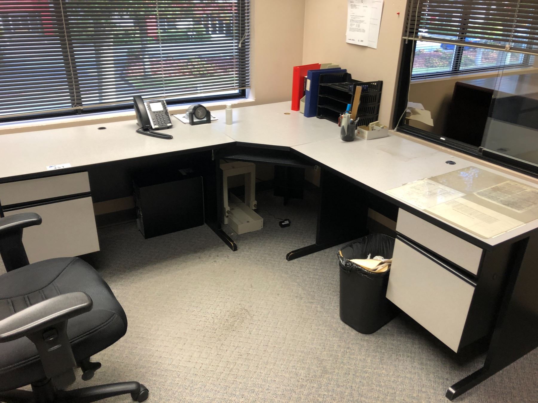CONTENTS OF OFFICE SIX INCLUDING DESKS, CABINETS, CHAIR AND CONTENTS - MUST TAKE ALL