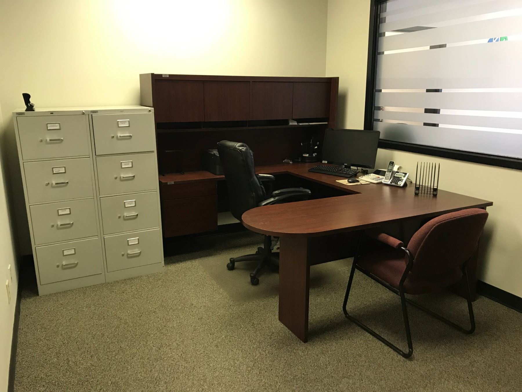 CONTENTS OF OFFICE-U-SHAPED DESK, 3 FILING CABINETS, BOOKSHELF, 2 CHAIRS, ACER MONITOR, PRINTER, ETC