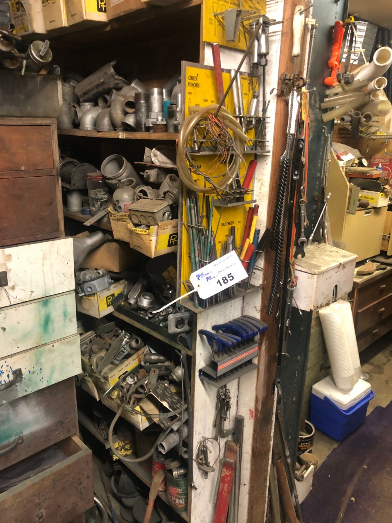 CONTENTS OF RACK INCLUDING PIPE FITTINGS AND OTHER ASSORTED PARTS