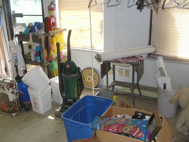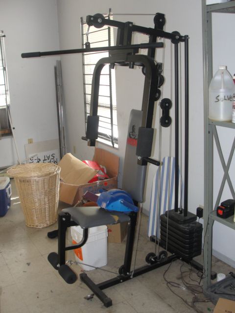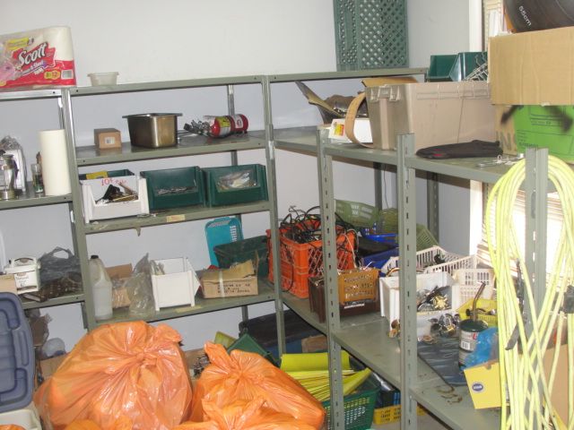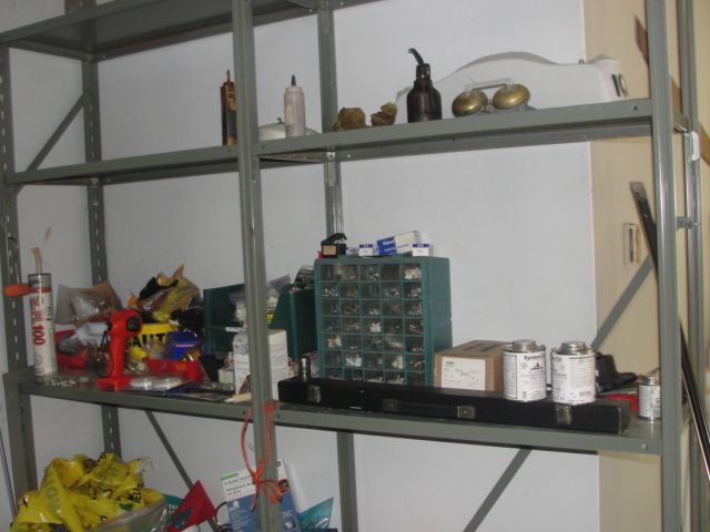 CONTENTS OF ROOM BEHIND OFFICE; SHELVING, WEIGHT LIFTING EQUIPMENT, MISC AND MORE