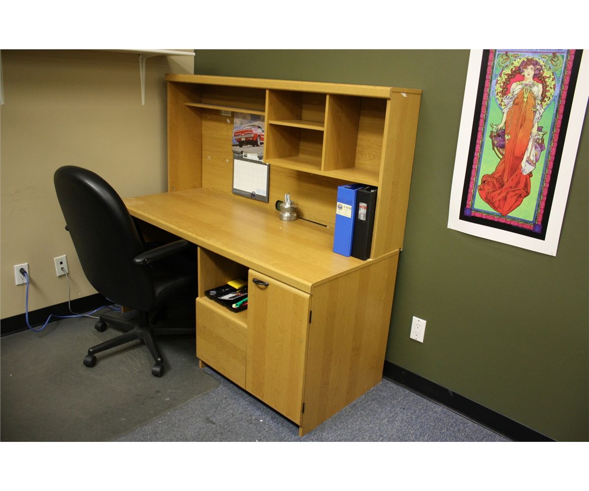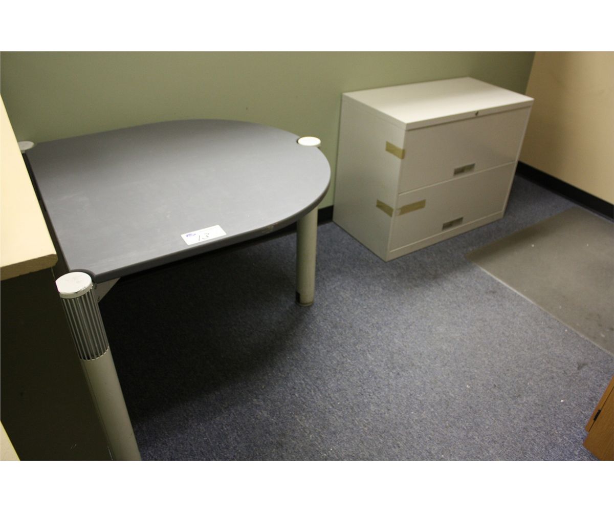 CONTENTS OF SALES OFFICE INCLUDING: DESK WITH HUTCH, CHAIR, FILE CABINET, SHELF, TABLE AND CONTENTS