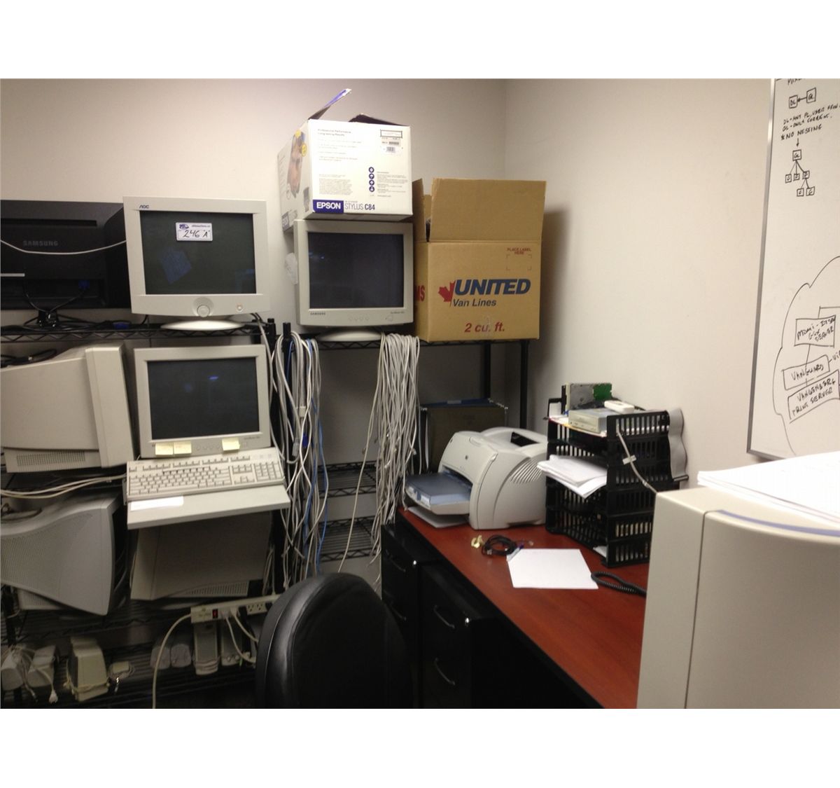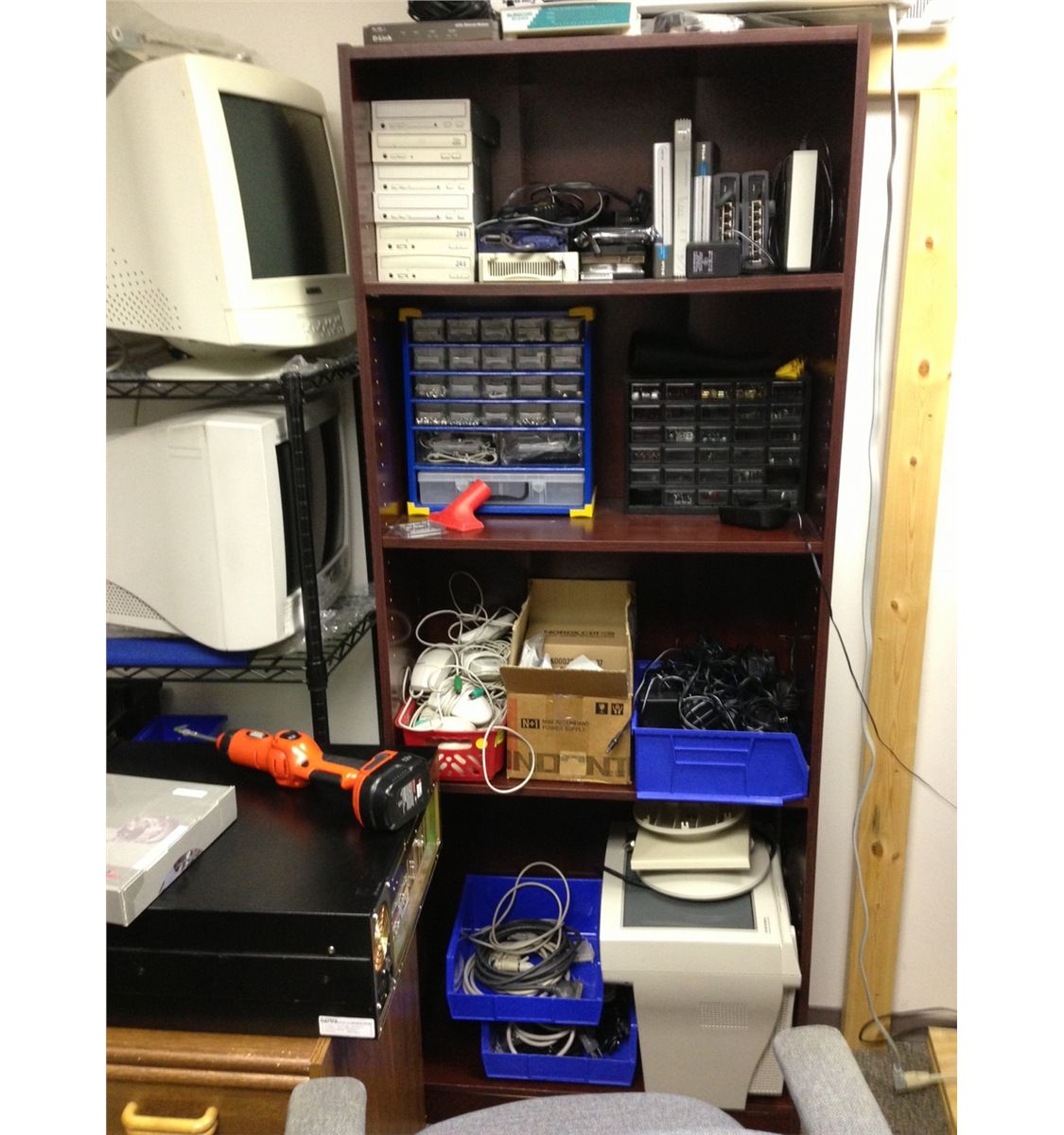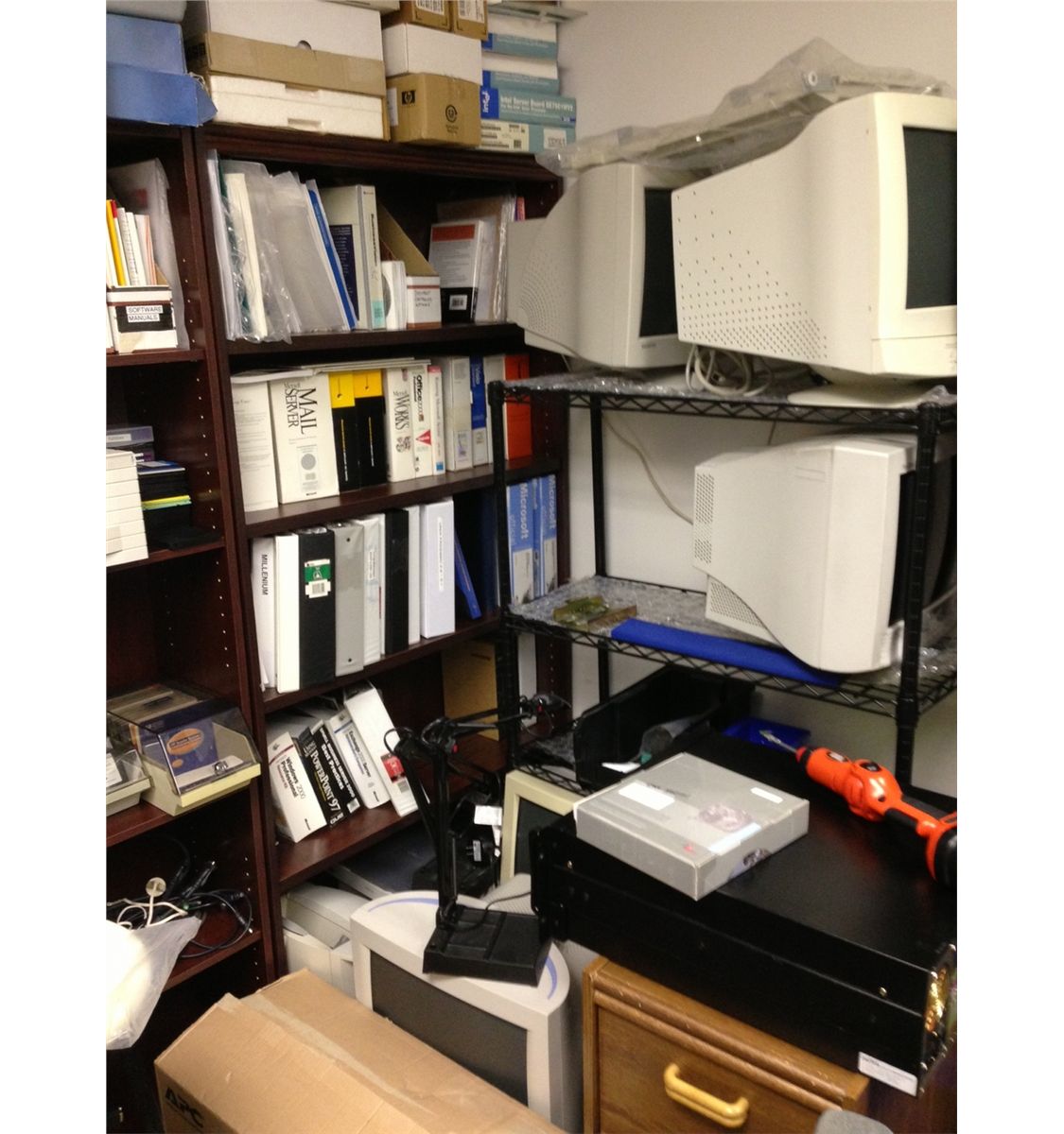 contents of server room incl: 3 bookcases , 4 metro racks, computer products, 2 server racks, desk, chair & contents