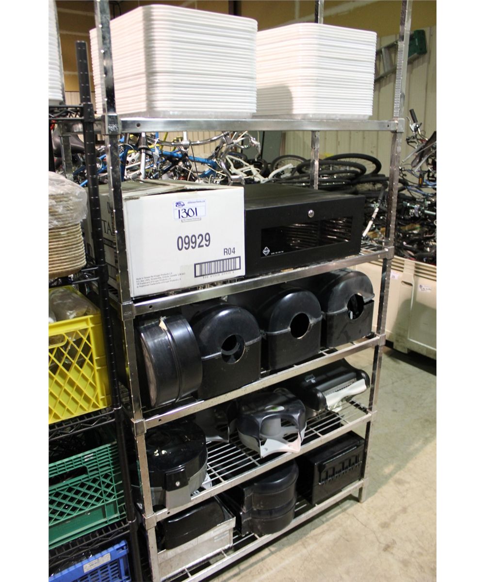 CONTENTS OF SHELF, TRAYS, TOILET AND PAPER TOWEL DISPENSERS