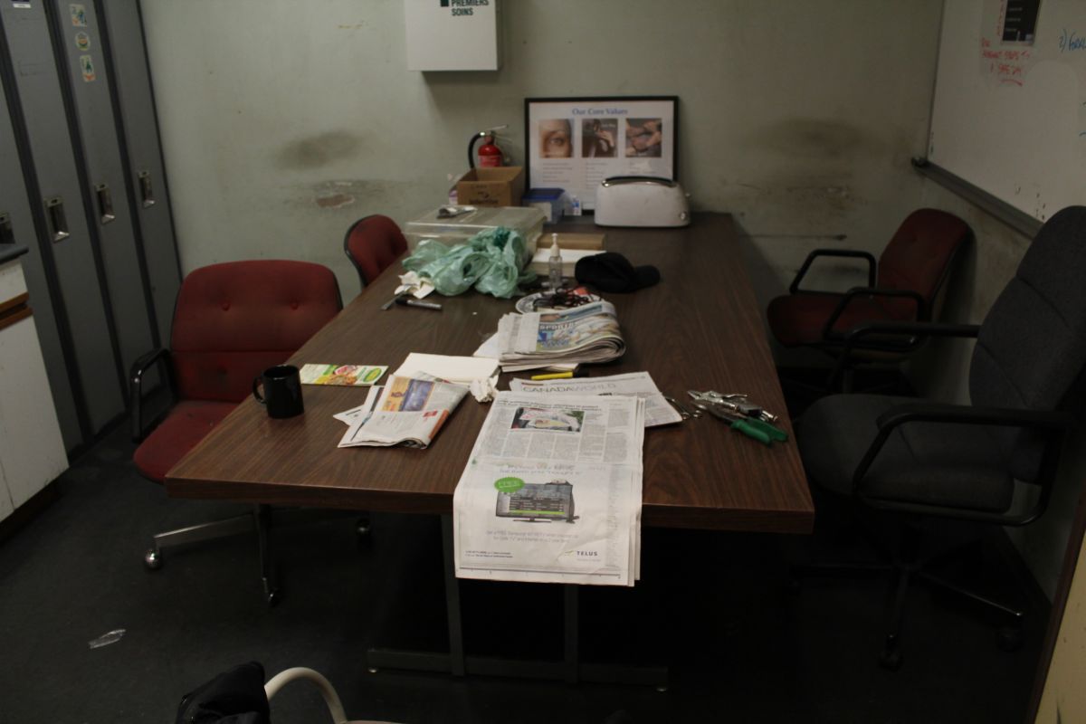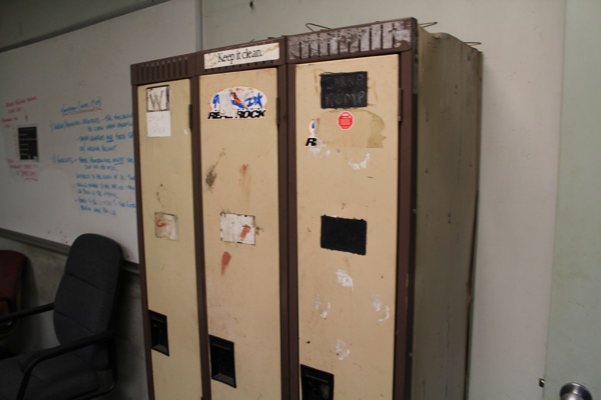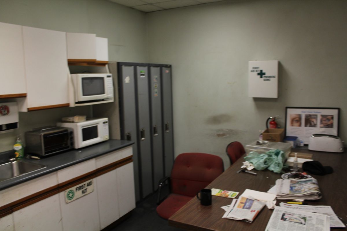 CONTENTS OF SHOP LUNCH ROOM INCLUDING: 2 LOCKERS, FRIDGE, 2 MICROWAVES, TOASTER OVEN, TABLE AND 5 CHAIRS