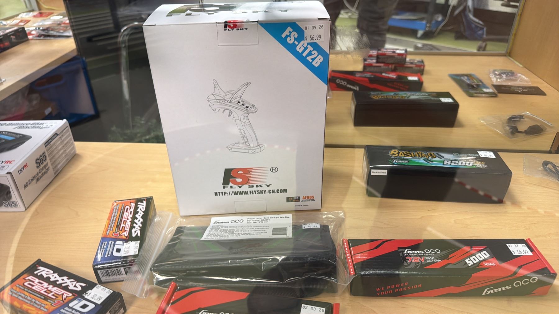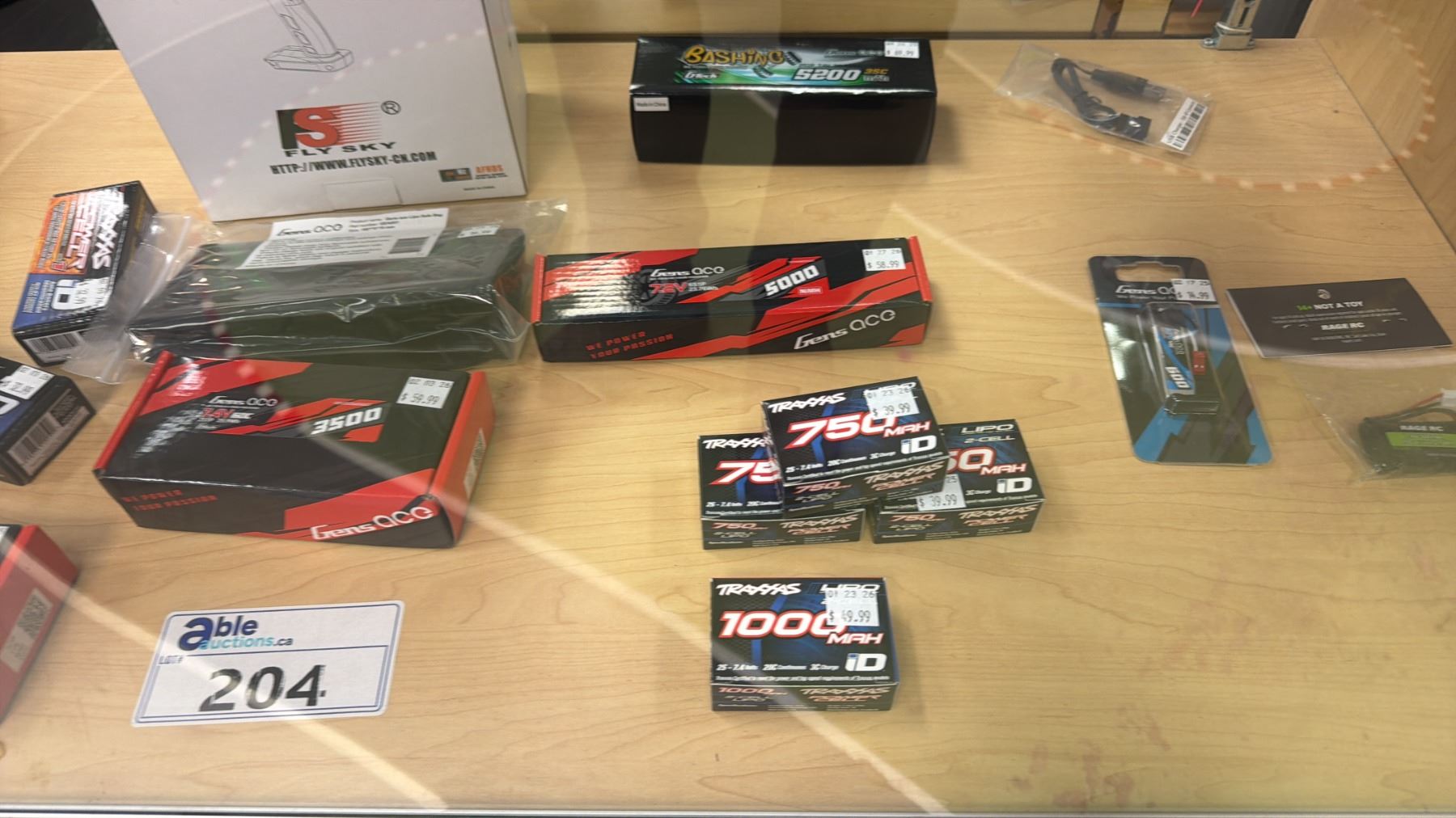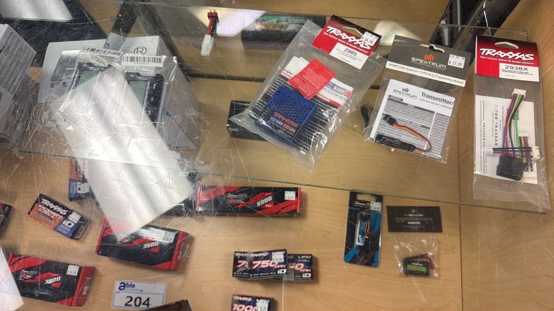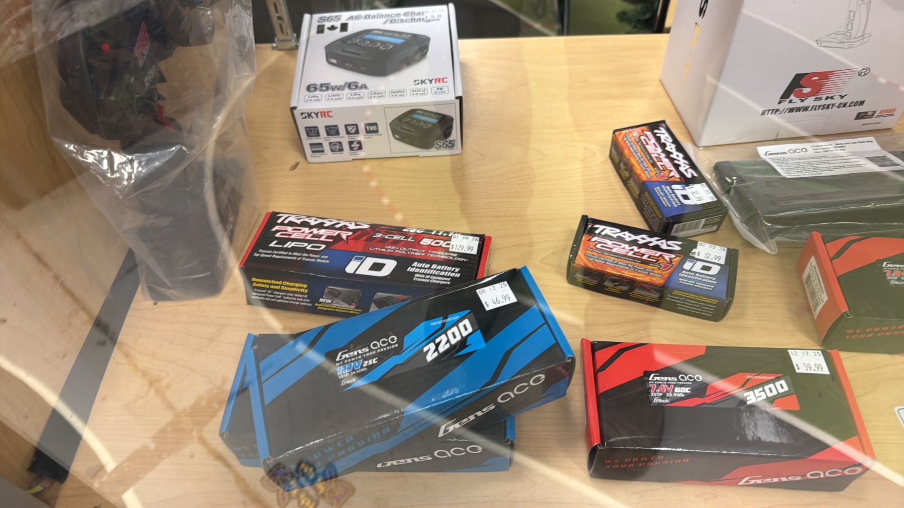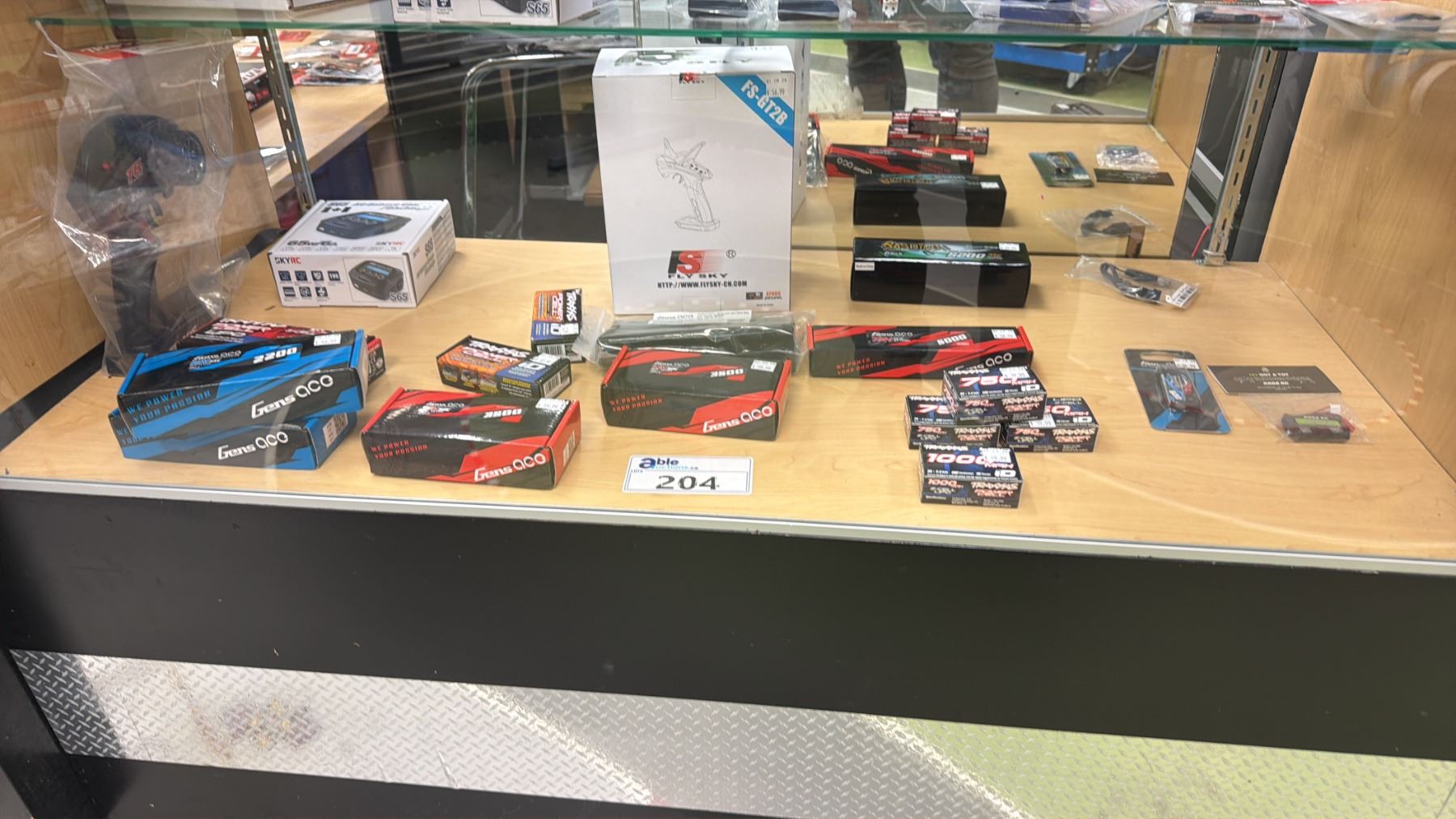 CONTENTS OF SHOWCASE INCLUDING; GENS ACO 2200 111V BATTERIES, TRAXXAS POWER CELL BATTERIES, SKYRC S65 AC BALANCE CHARGER/DISCHARGER & MORE *SHOWCASE NOT INCLUDED*