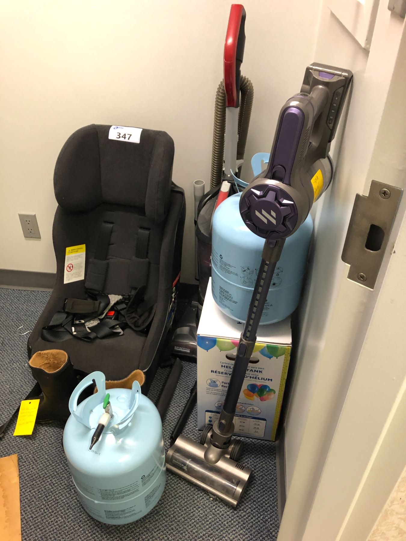 CONTENTS OF STORAGE ROOM INCLUDING VACUUMS, HELIUM TANKS, BALLOONS, CHILDREN'S CAR SEAT AND MORE - MUST TAKE ALL