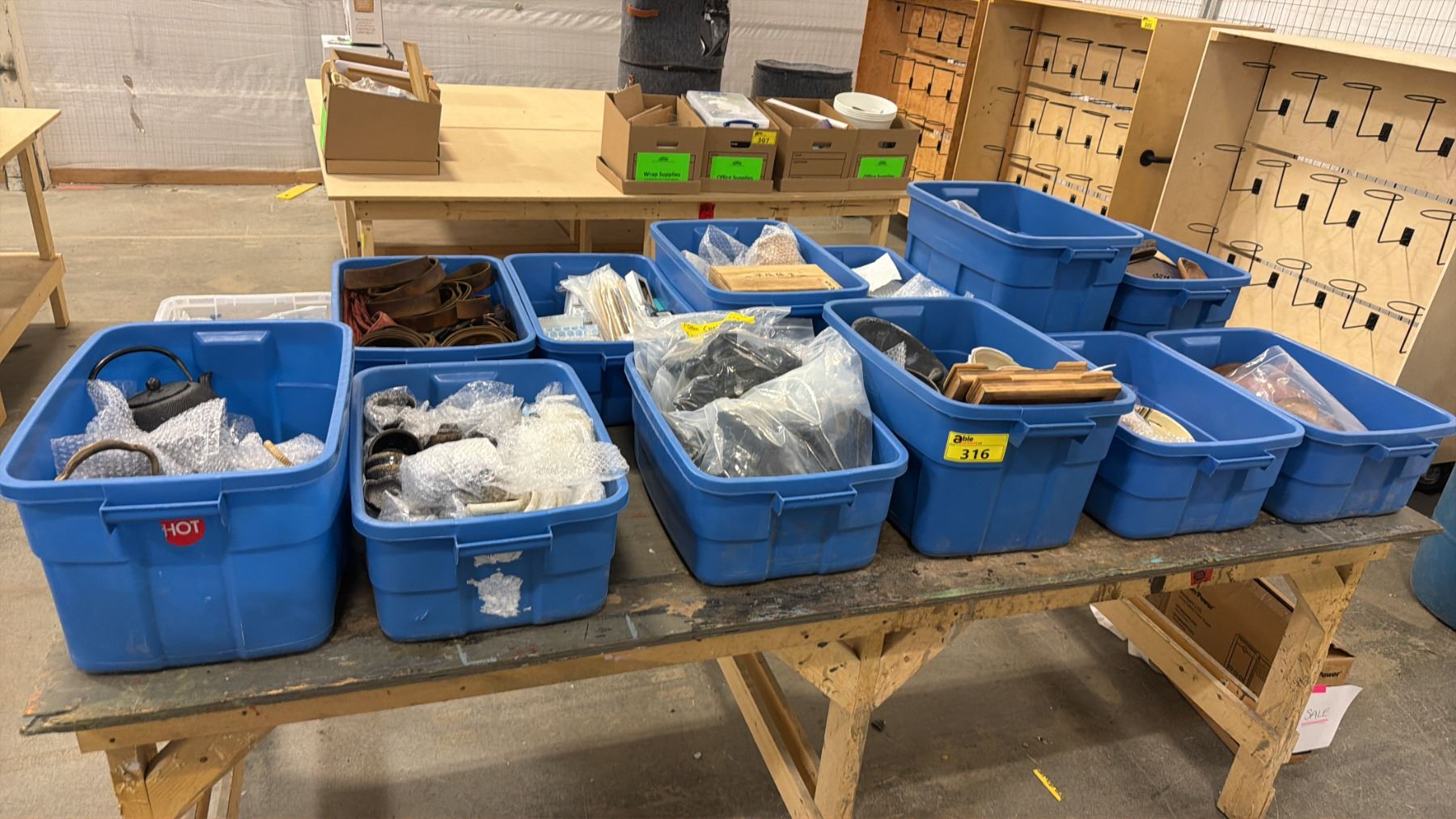 CONTENTS OF TABLE INCLUDING; SHOW PROPS, BELTS, TOTES & MORE