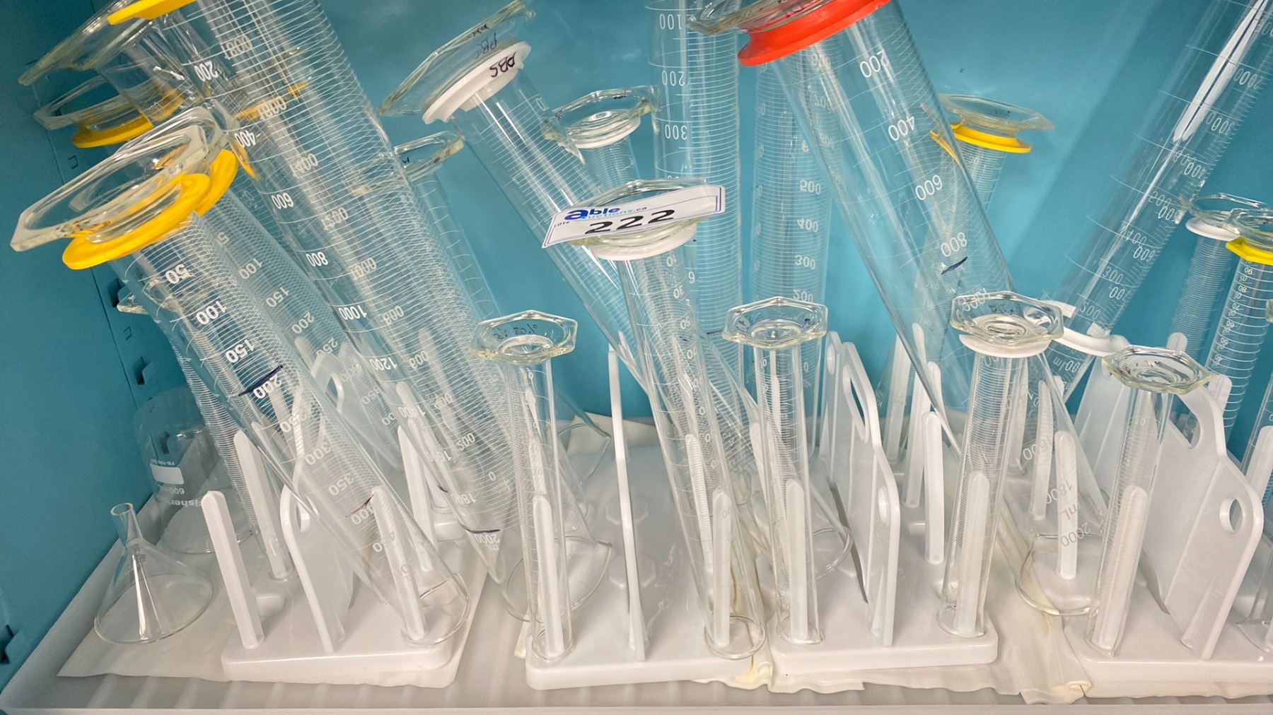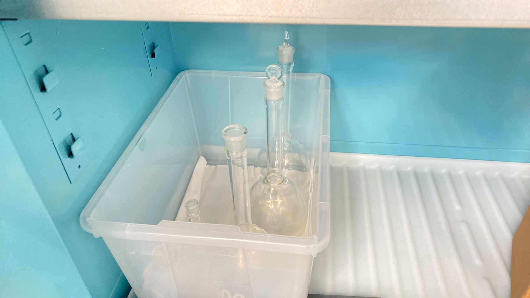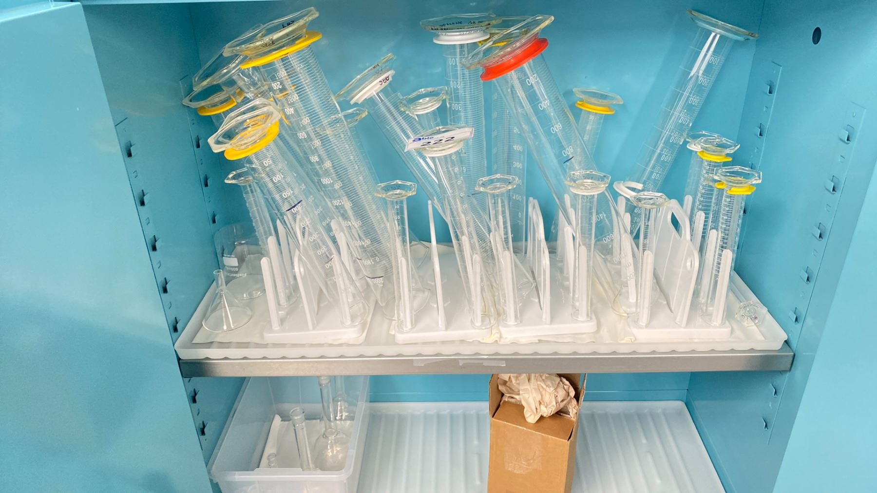 CONTENTS OF ULINE STORAGE CABINET; ASSORTED BEAKERS AND GLASSWARE