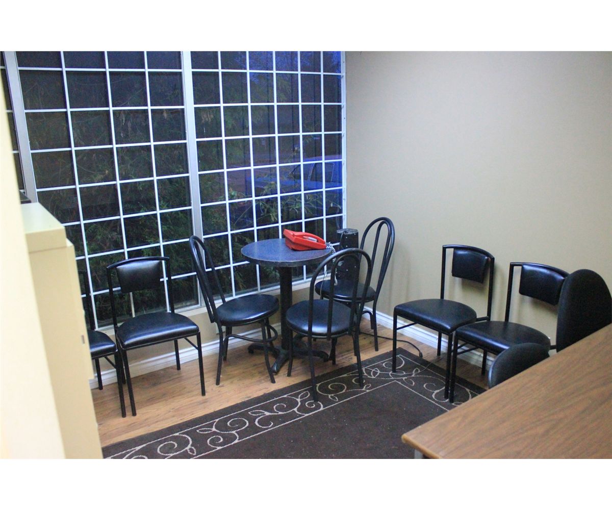 CONTENTS OF WHITE DOOR OFFICE INCLUDING: DESK, CAFE TABLE WITH CHAIRS & MISC