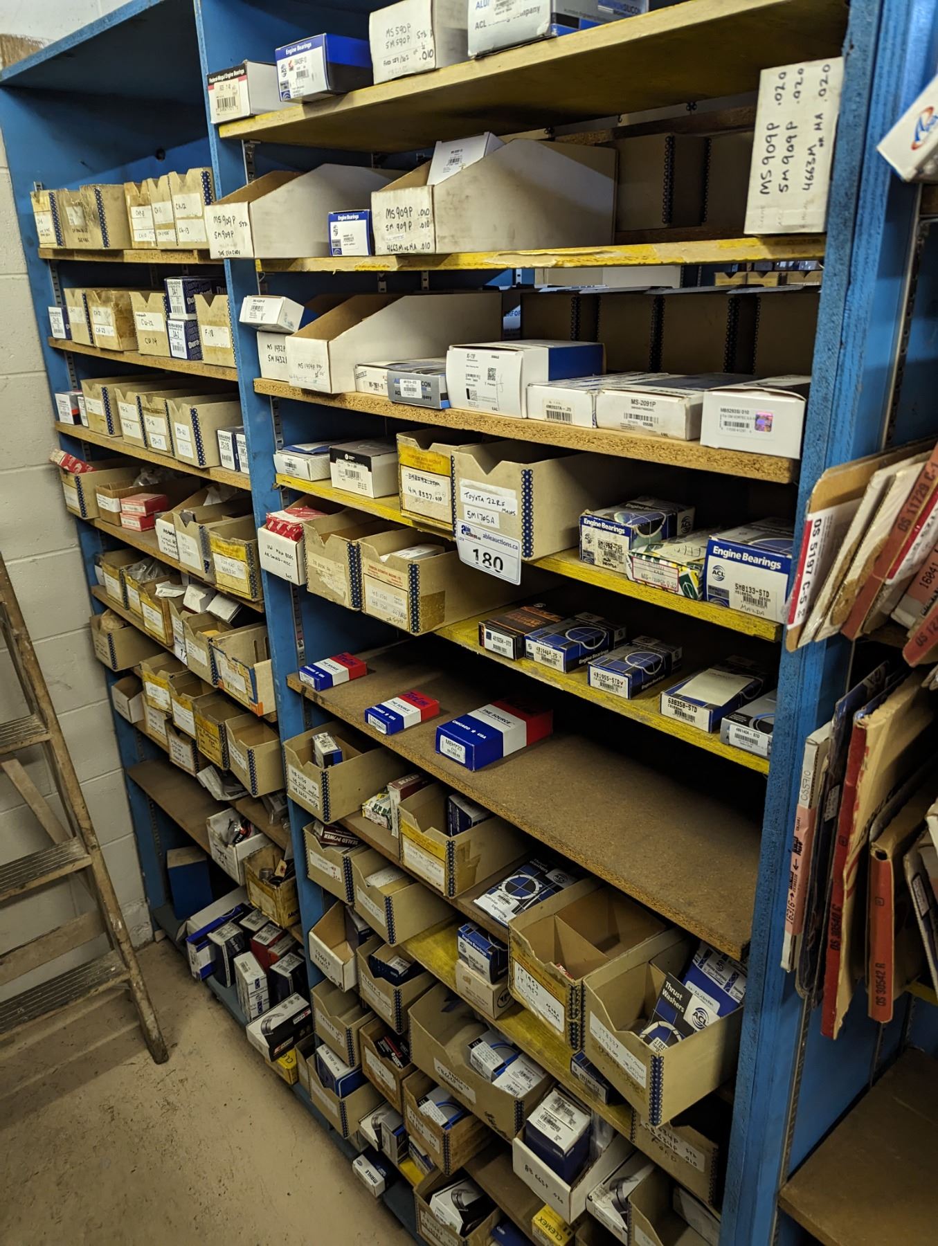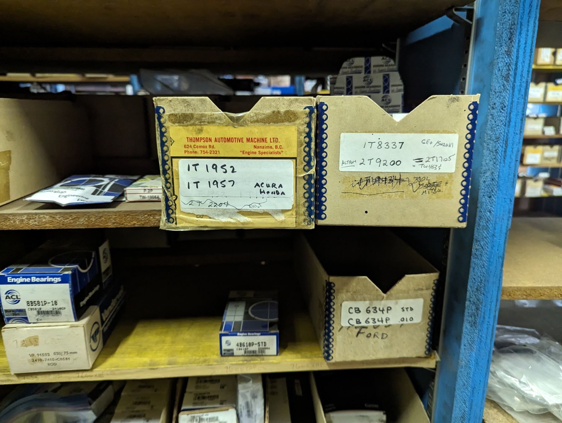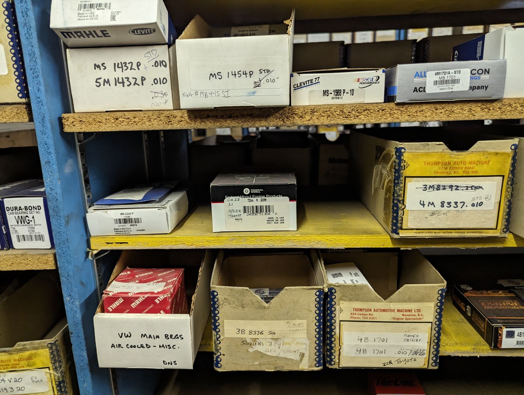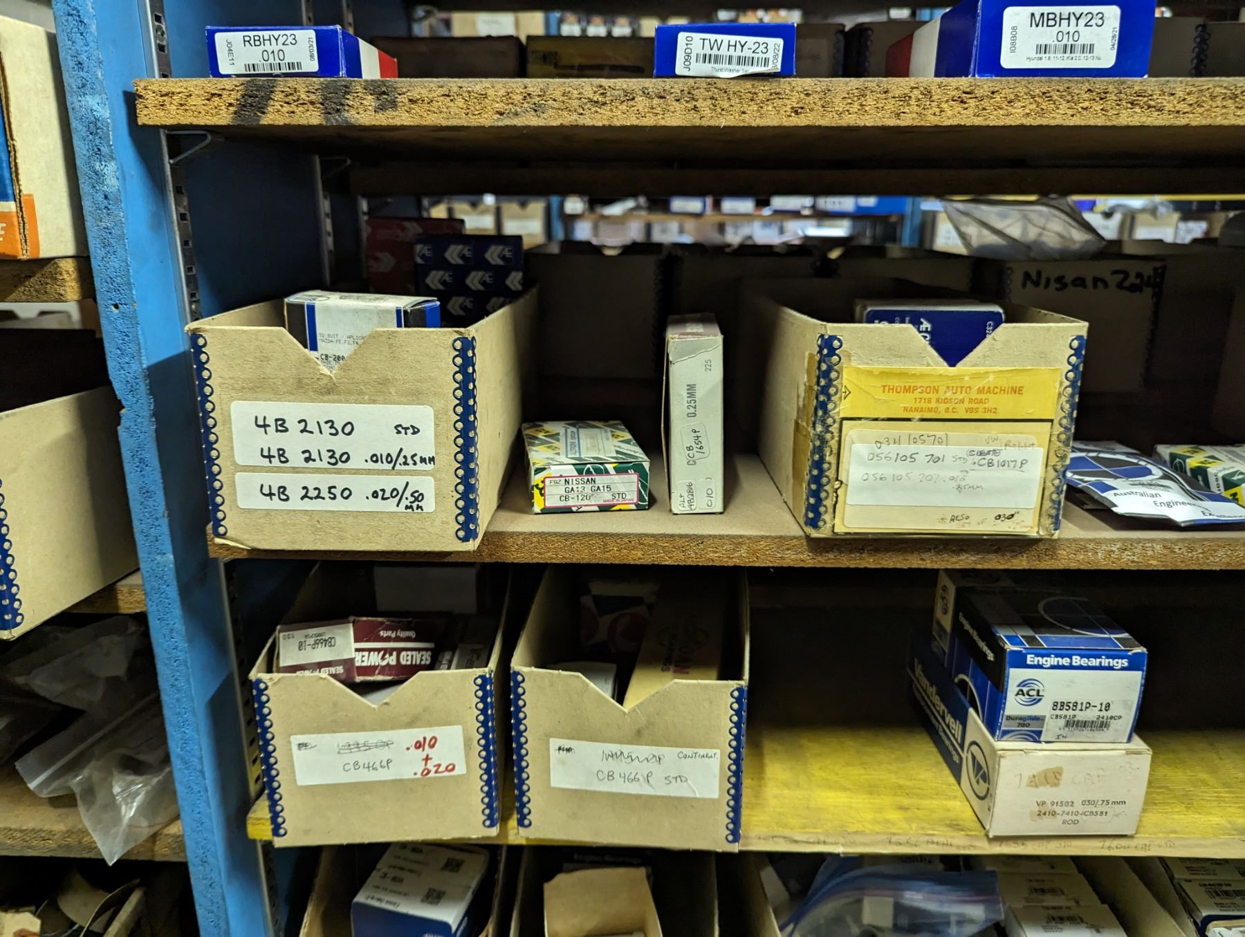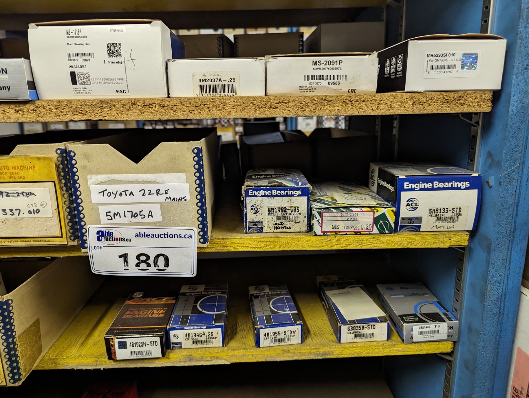 CONTENTS TOP TO BOTTOM OF ONE SHELF; ENGINE BEARINGS FOR ASSORTED MAKES AND MODELS, THESE ARE MAIN BEARING SETS PLUS ASSORTED ENGINE BEARINGS ETC