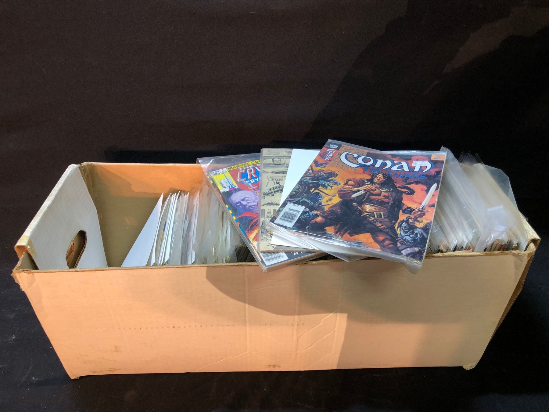 COPPER AGE LONG BOX OF MIXED DC & MARVEL TITLES (MID GRADE AVG) MOST EARLY TO MID 1980S