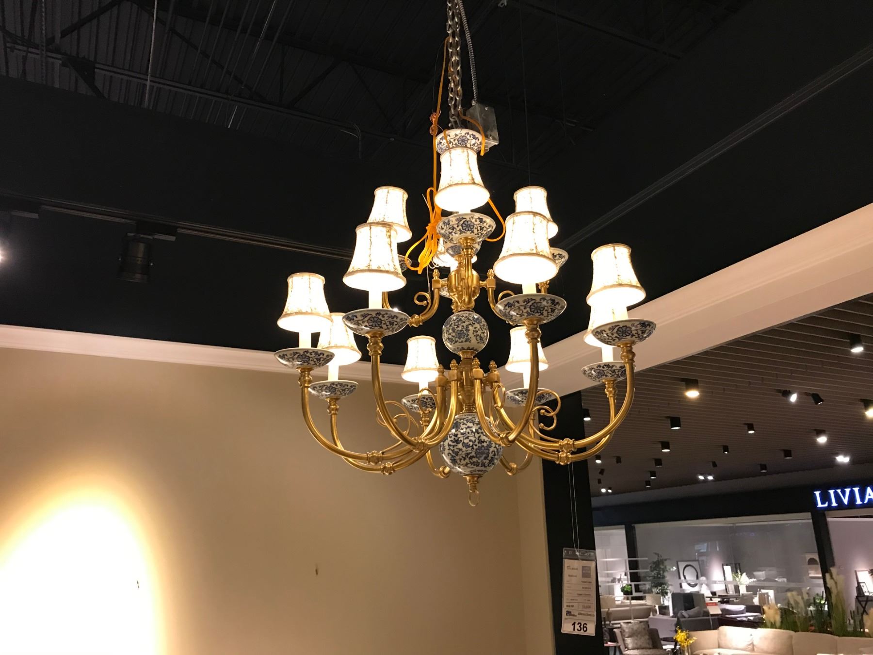 COPPER & CERAMIC 12 HEAD SHADED CHANDELIER 88 X 88 X 93 CM MSRP $3,604