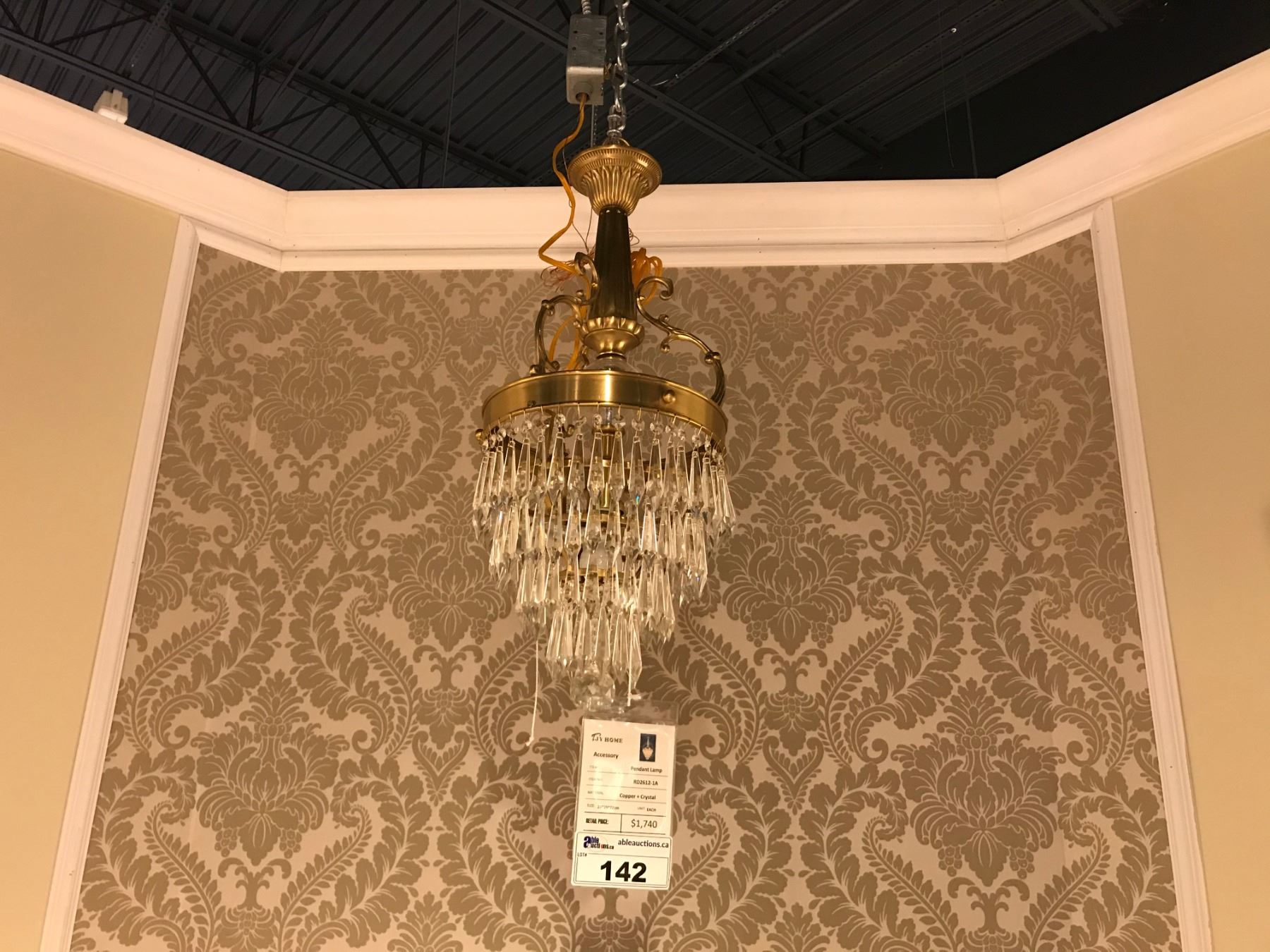 COPPER & CRYSTAL SINGLE HEAD CHANDELIER 29 X 29 X 72 CM MSRP $1,740