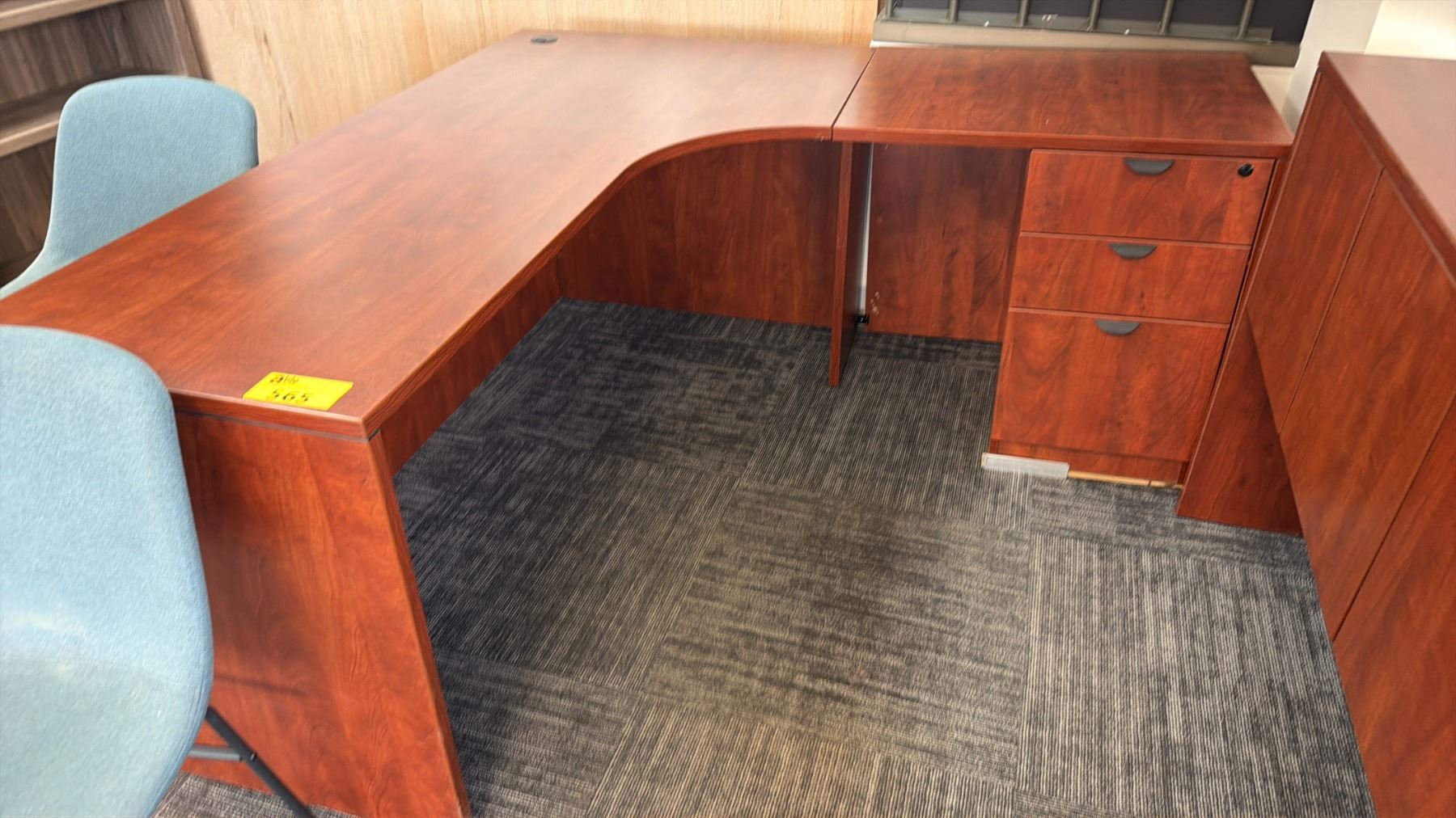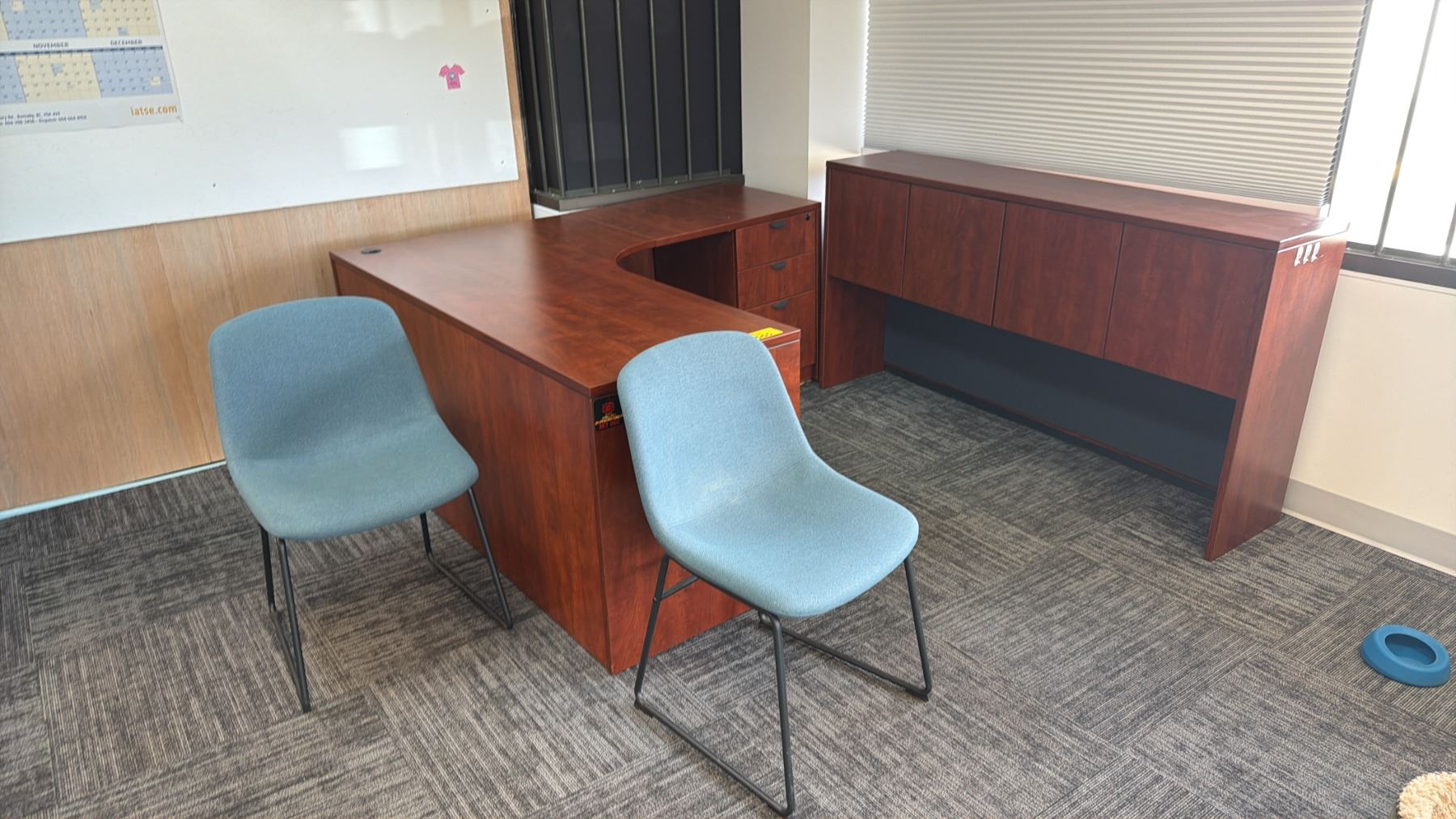 CORNER EXECUTIVE DESK WITH DESK TOP CABINET & 2 CHAIRS
