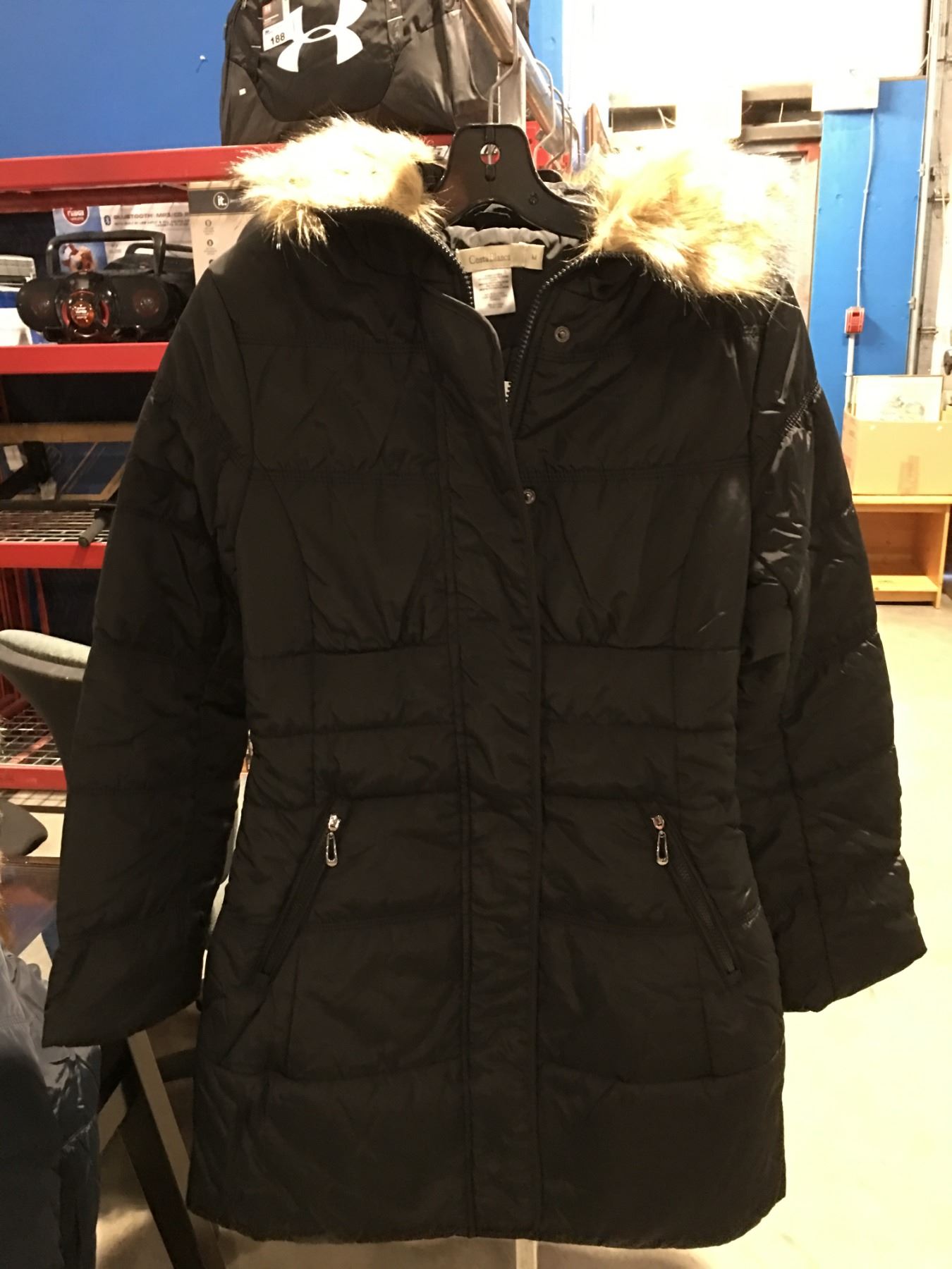 COSTA BLANCA LADIES FAUX FUR LINED COLLAR LONG WINTER JACKET BLACK SIZE M