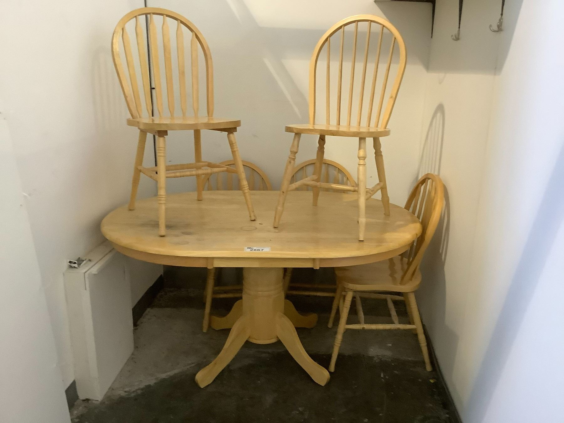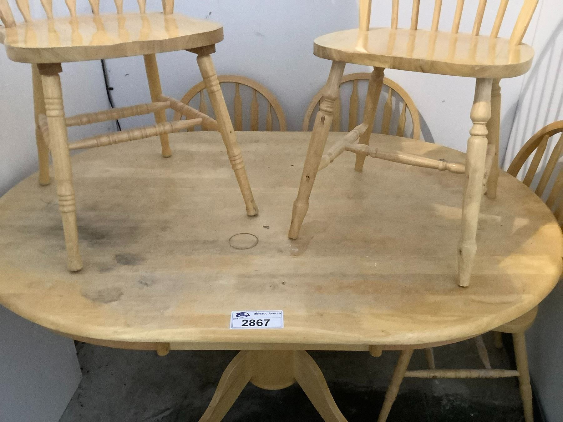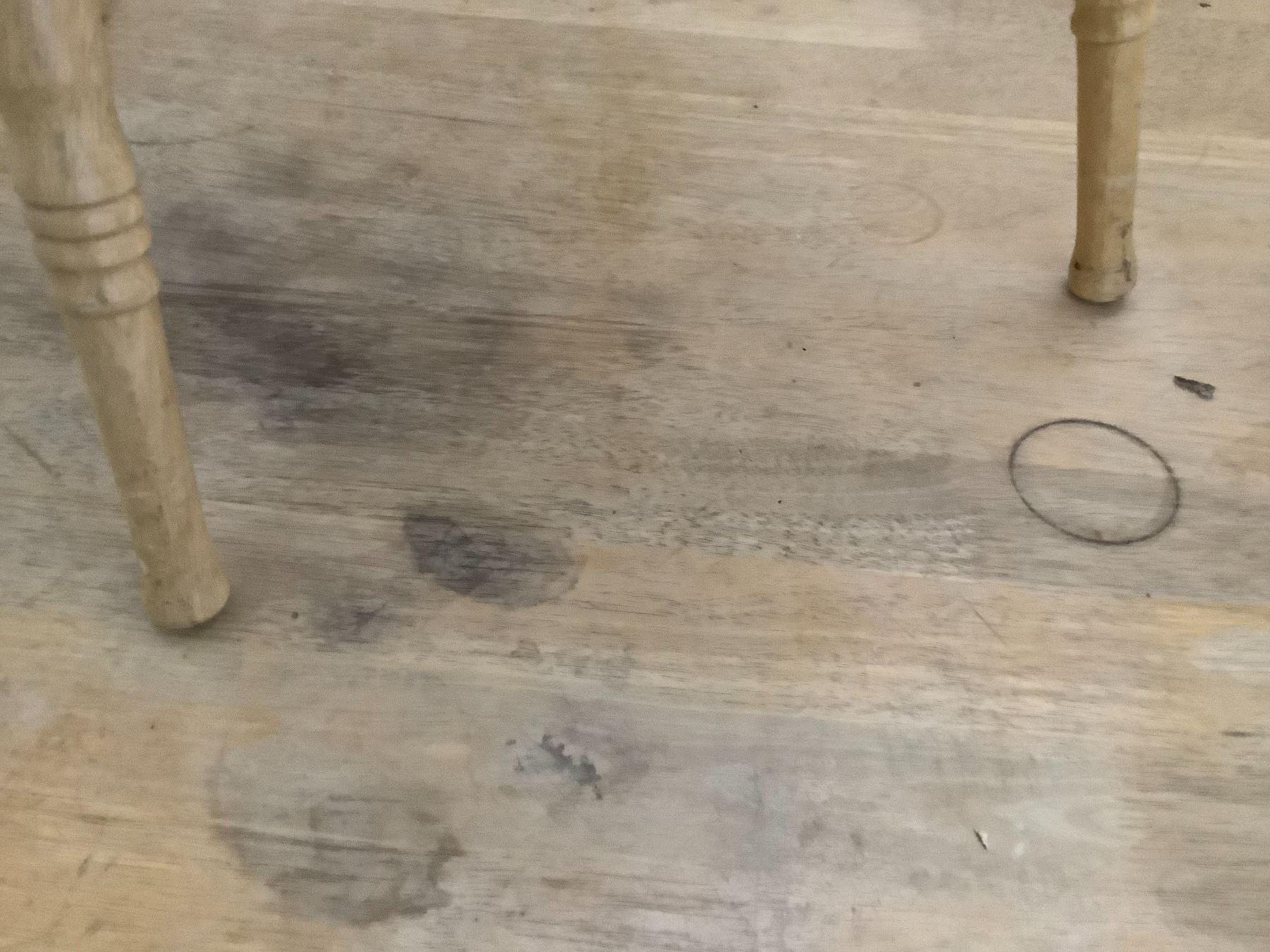 COUNTRY OAK TABLE WITH 5 MATCHING CHAIRS (VISIBLE STAINS)