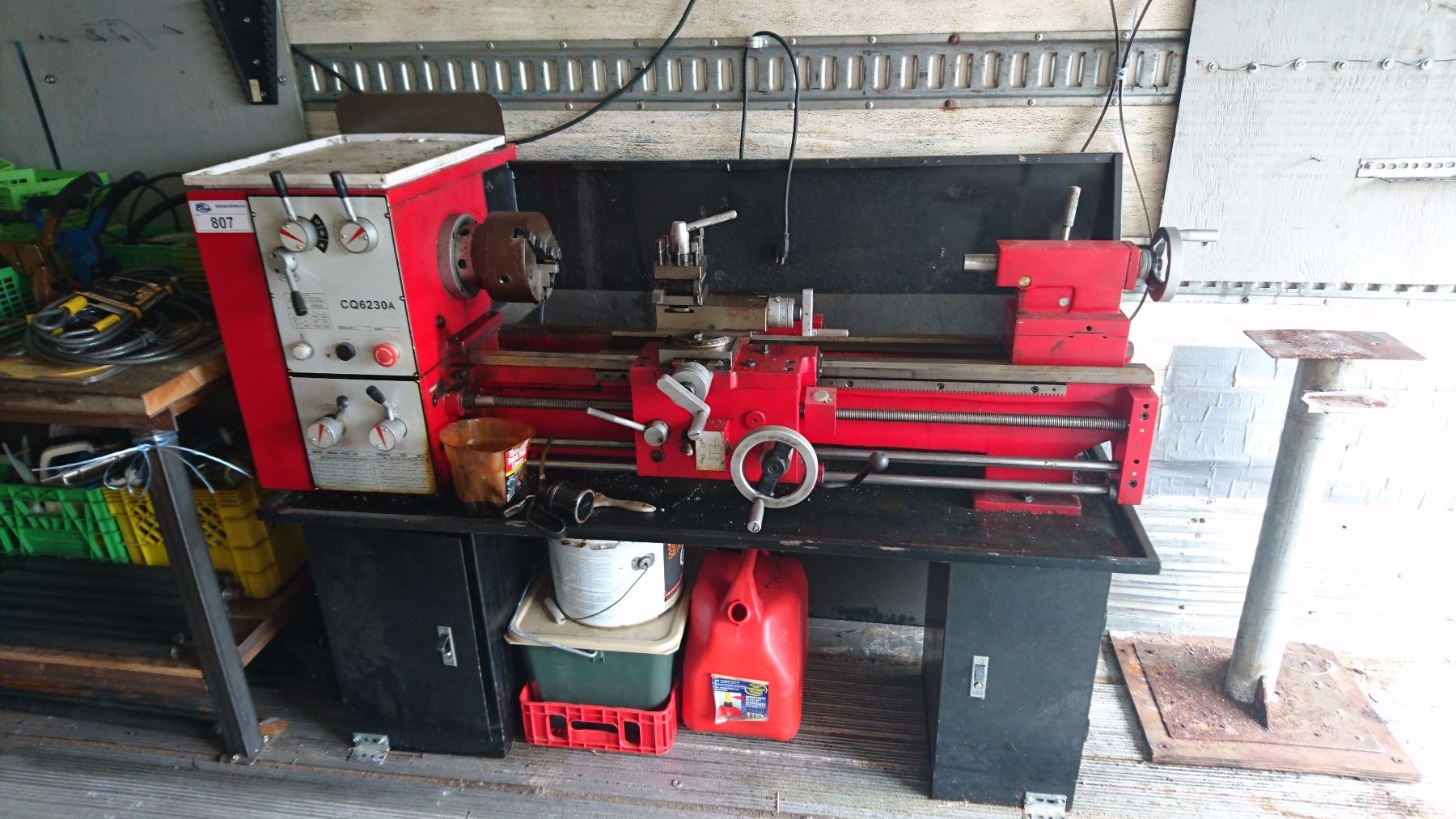 CQ6230A METAL LATHE WITH WORK TABLE, TOOLING AND MISC