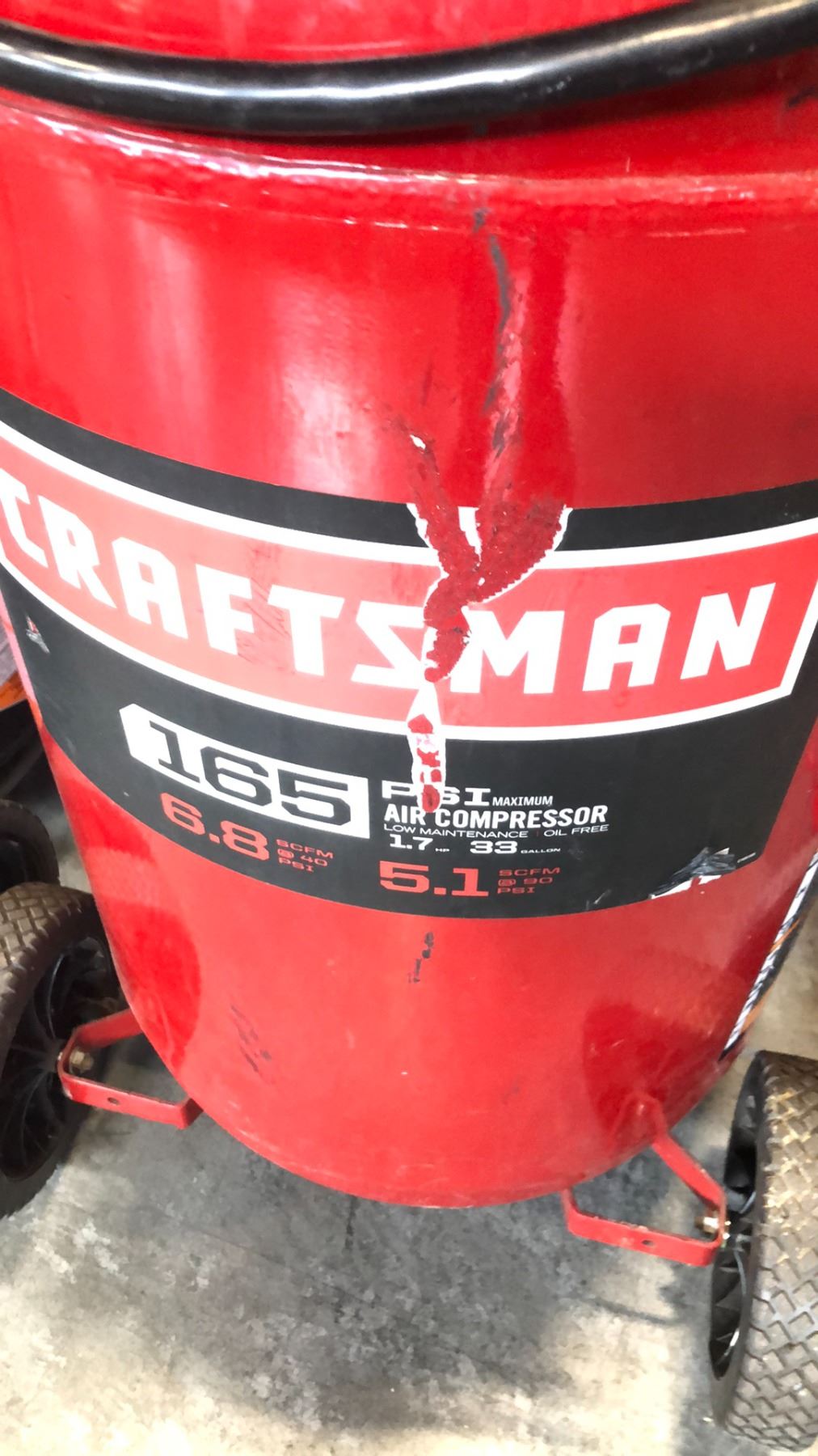 CRAFTSMAN 165-MAX PSI 33-GALLON UPRIGHT MOBILE COMPRESSOR MDL:C921.165720