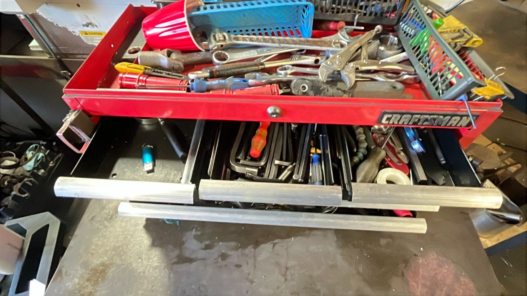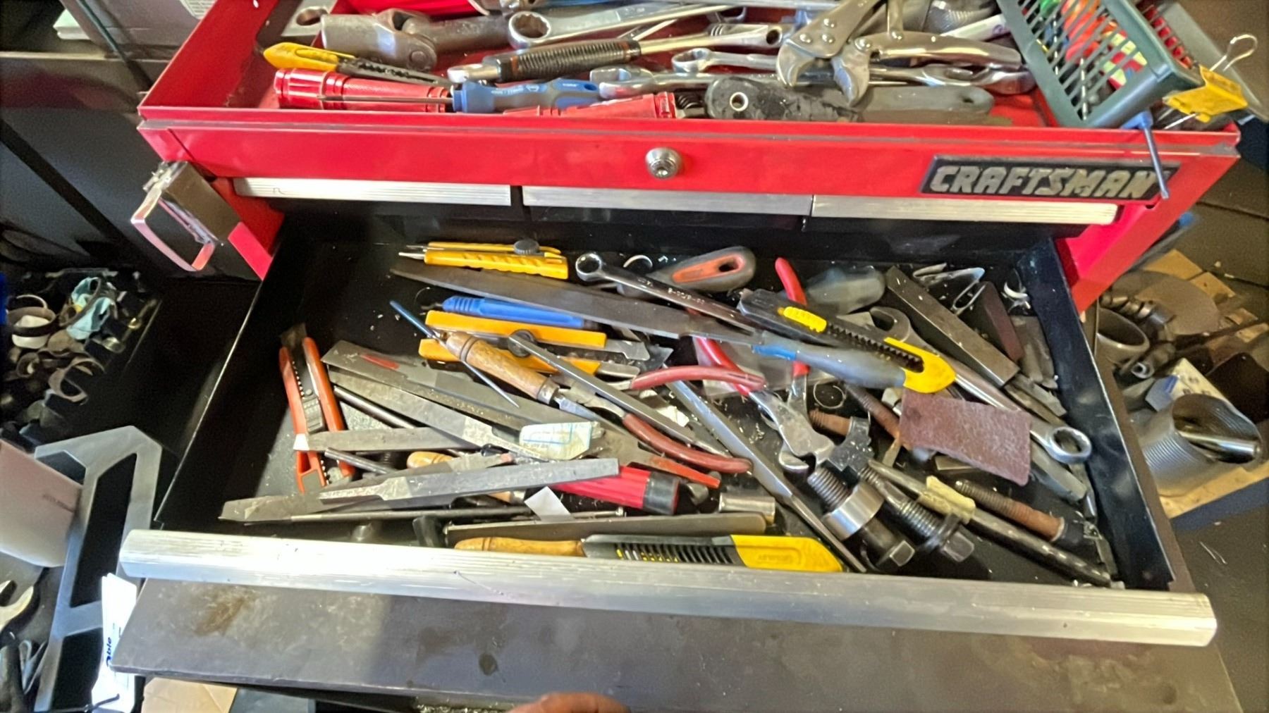 CRAFTSMAN 6 DRAWER TOOL BOX FILLED WITH ASSORTED TOOLS, FILES AND MORE