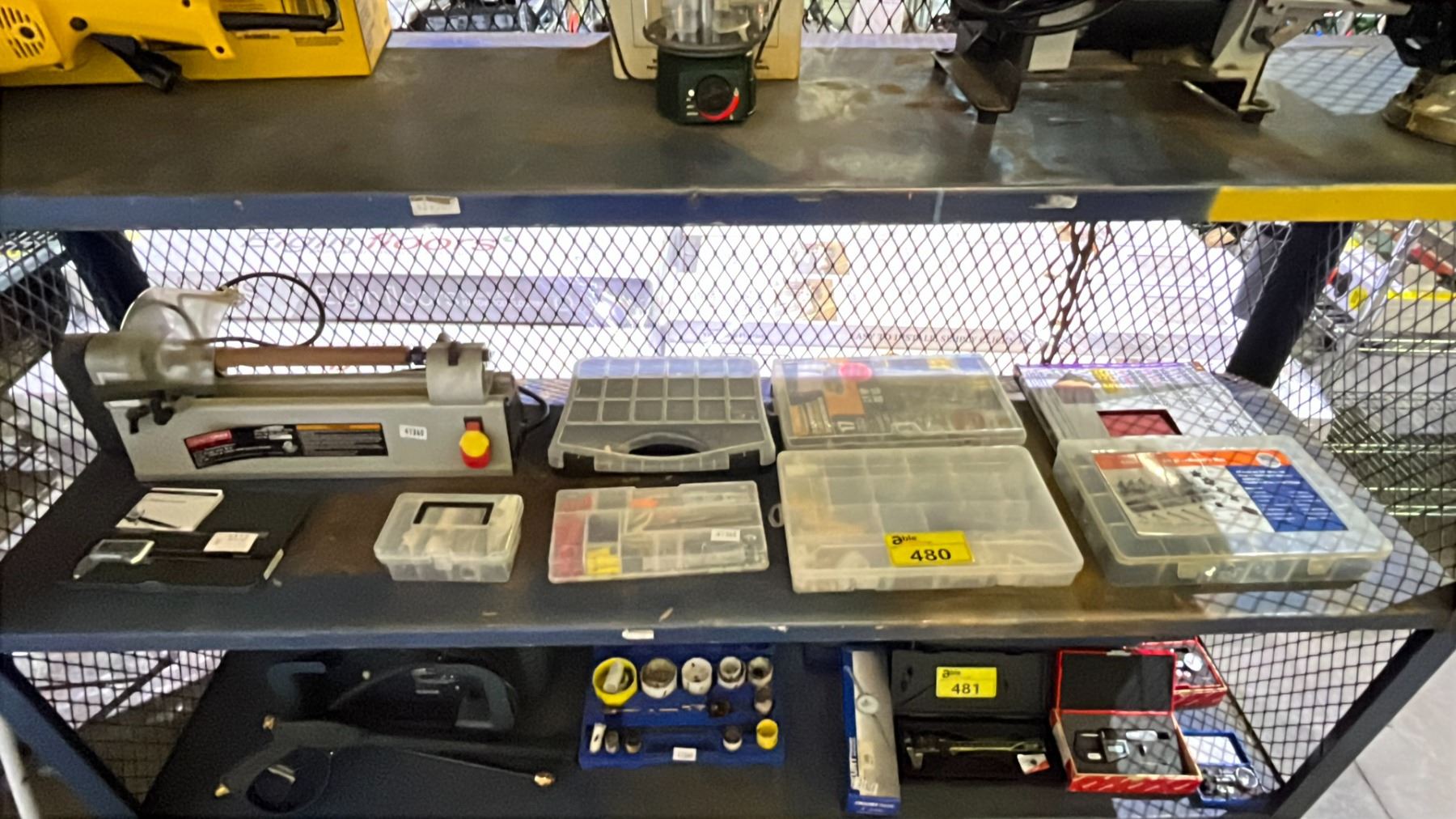 CRAFTSMAN MINI LATHE, HARDWARE KIT, WET/DRY SANDPAPER & SMALL PARTS ORGANIZERS WITH CONTENTS