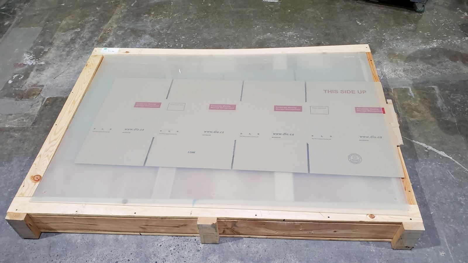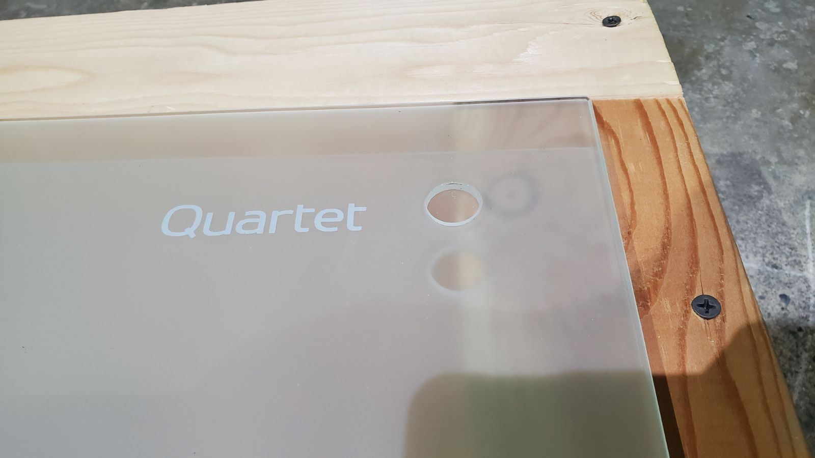 CRATE OF 5 QUARTET 6' X 4' FROSTED GLASS DRY ERASE BOARDS WITH HARDWARE
