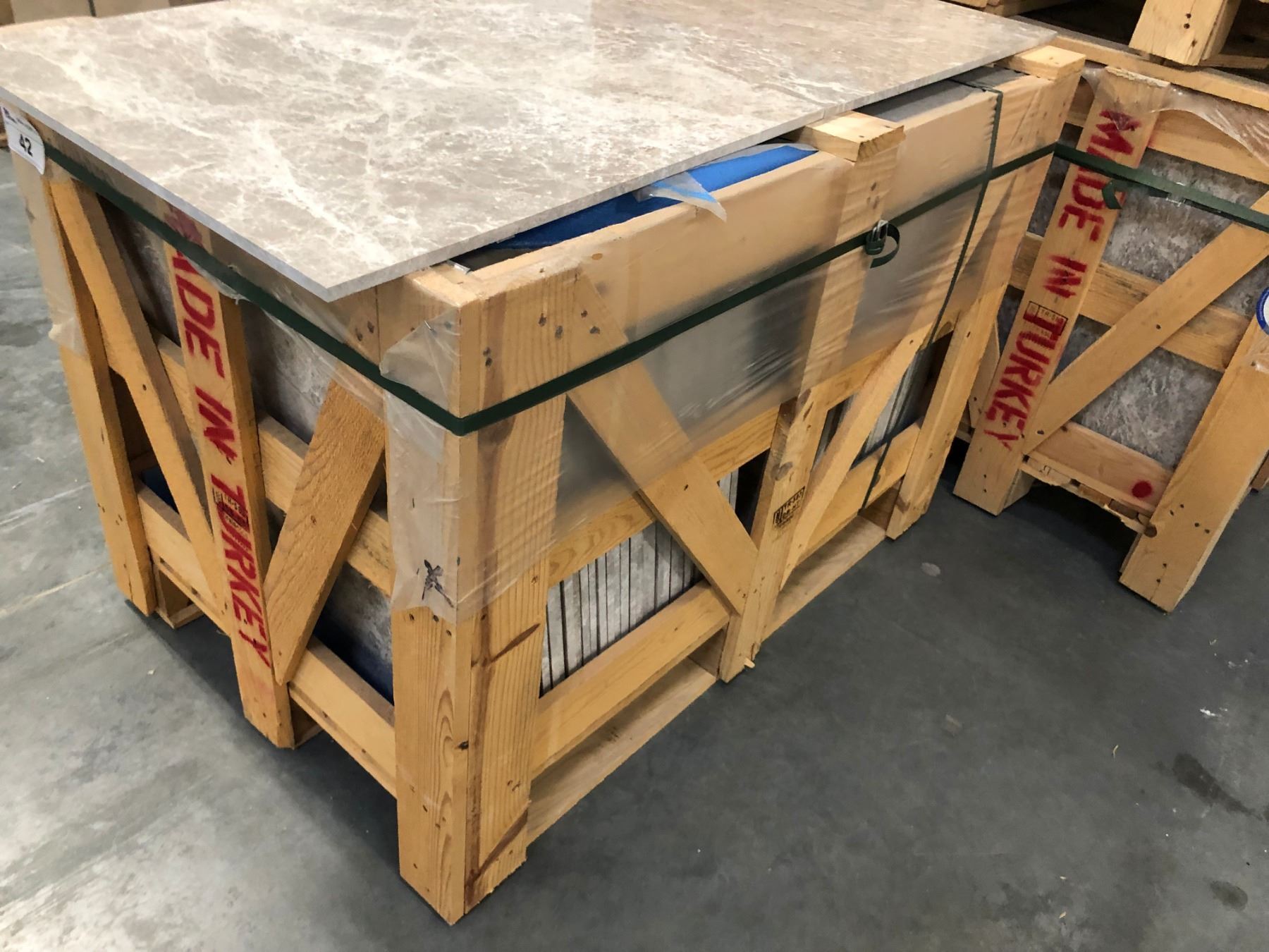 CRATE OF 75 NATURAL MARBLE TILES, 2' X 2', 300 SQ FT TOTAL