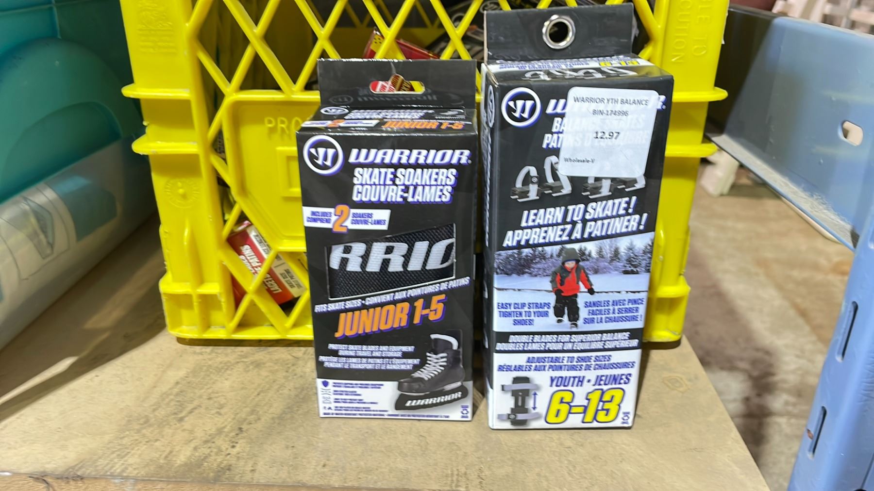 CRATE OF ASSORTED BALANCE SKATES & SKATE GUARDS