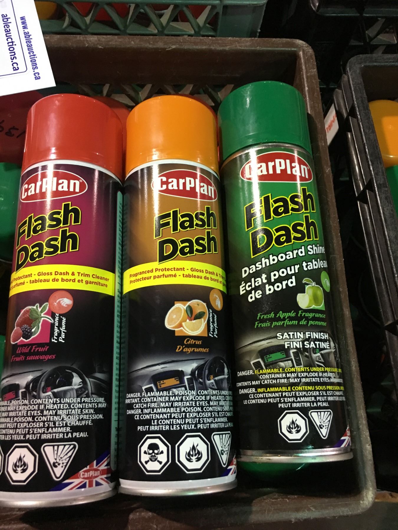 CRATE OF ASSORTED CARPLAN FLASH DASH AUTOMOTIVE DASH & TRIM CLEANERS