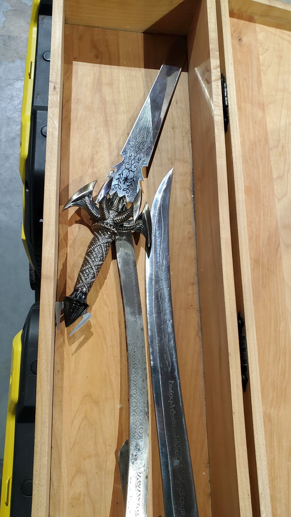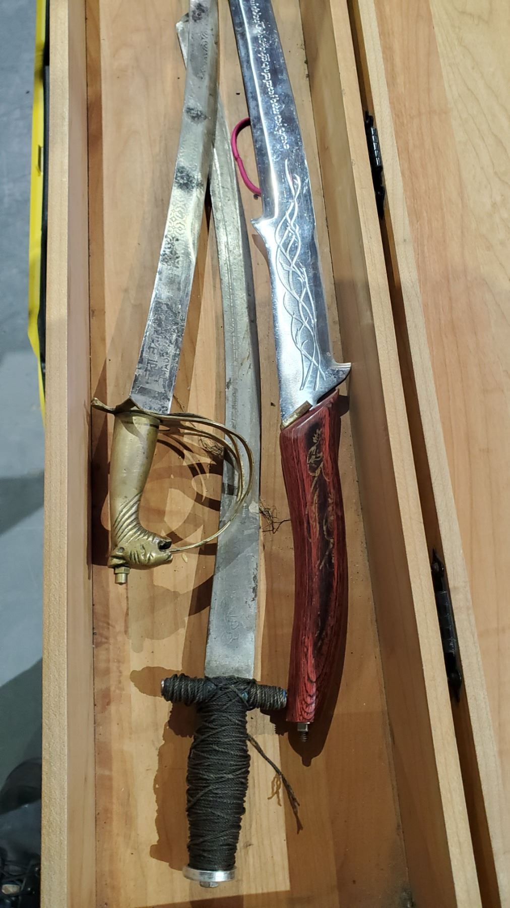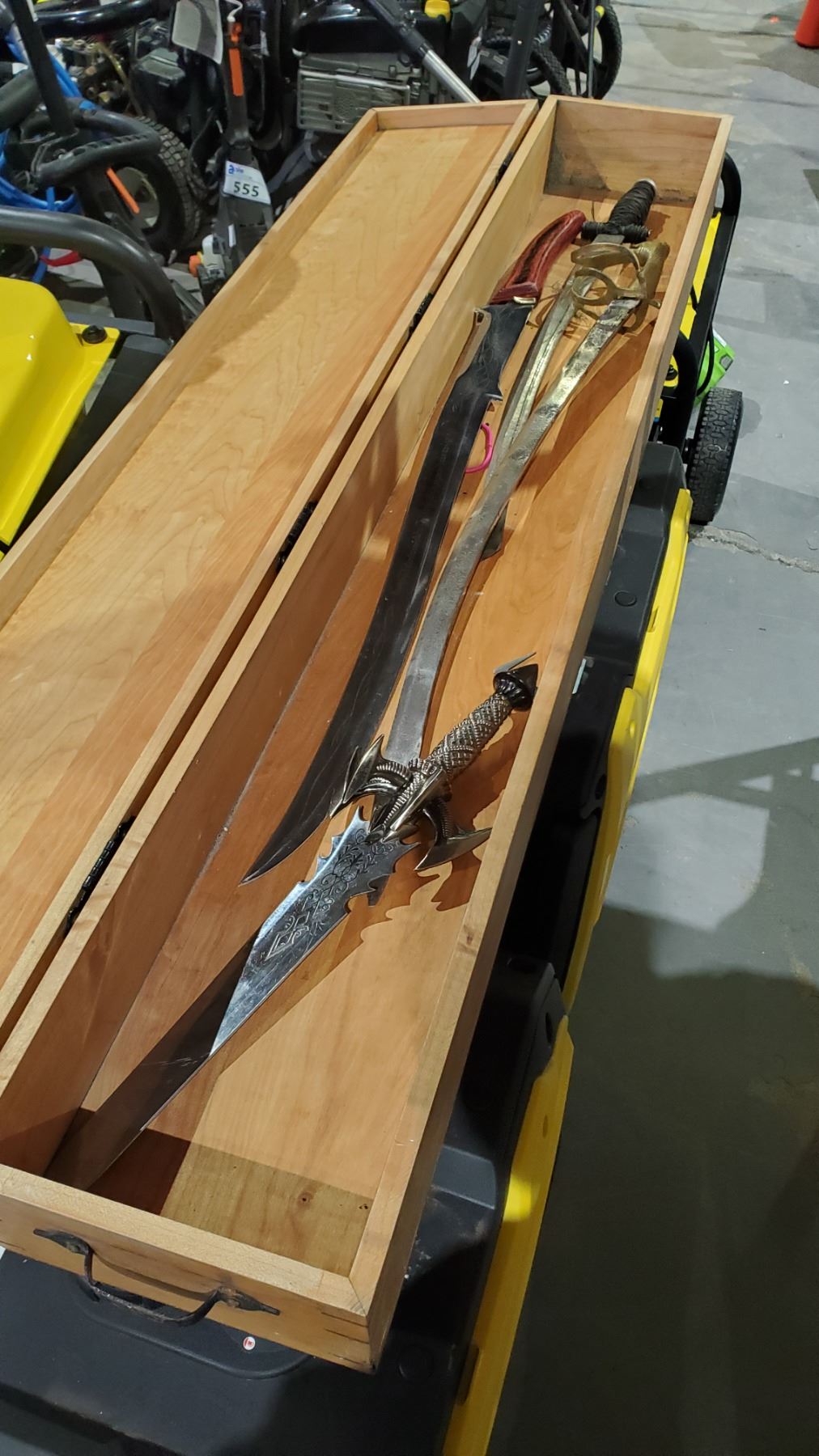 CRATE OF ASSORTED SWORDS AND KNIVES