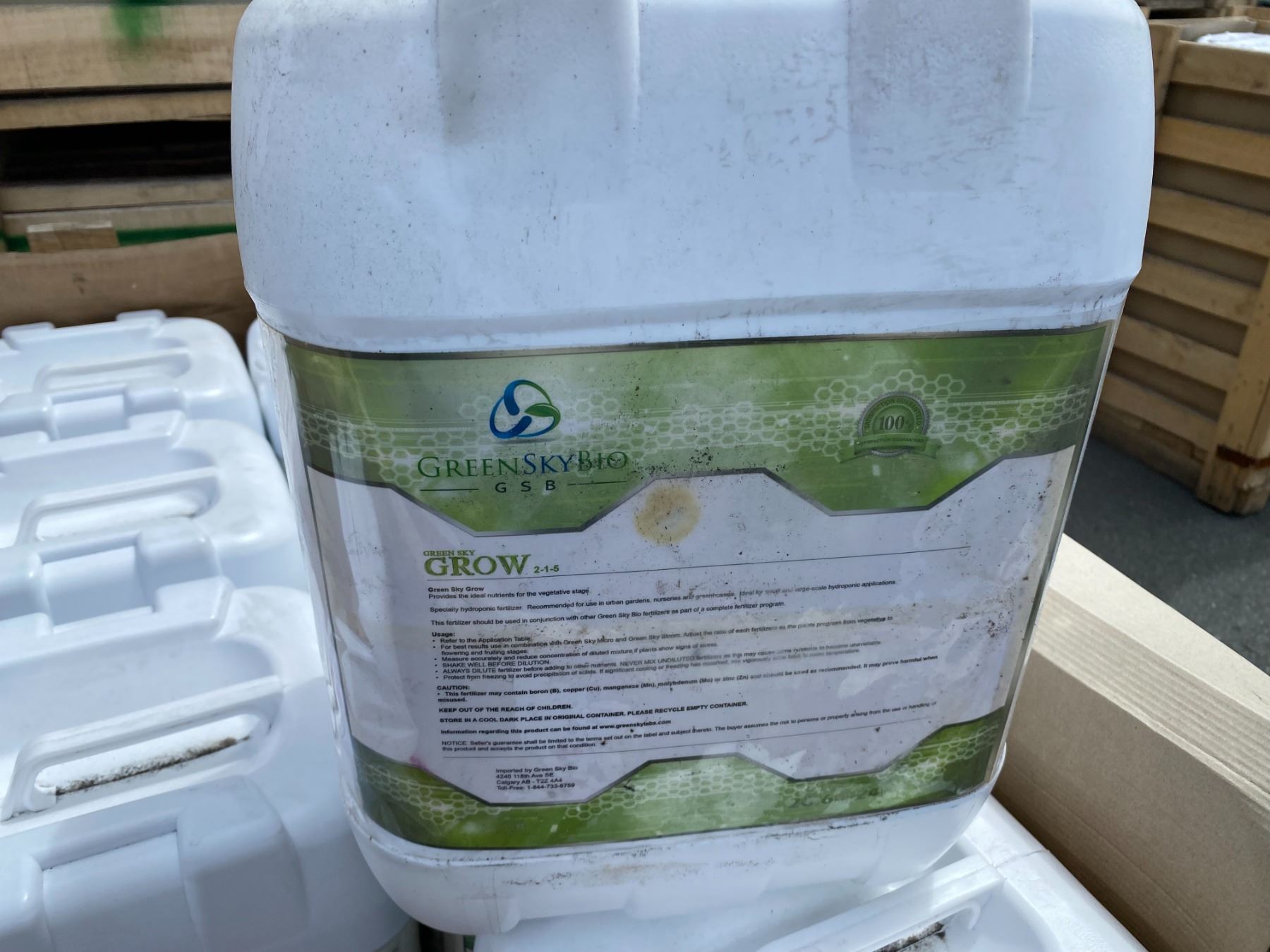 CRATE OF GREEN SKY BIO 'GROW' FERTILIZER, CRATE CONTAINS 24 X 24 LITRE JUGS, TOTAL OF 576 LITRES
