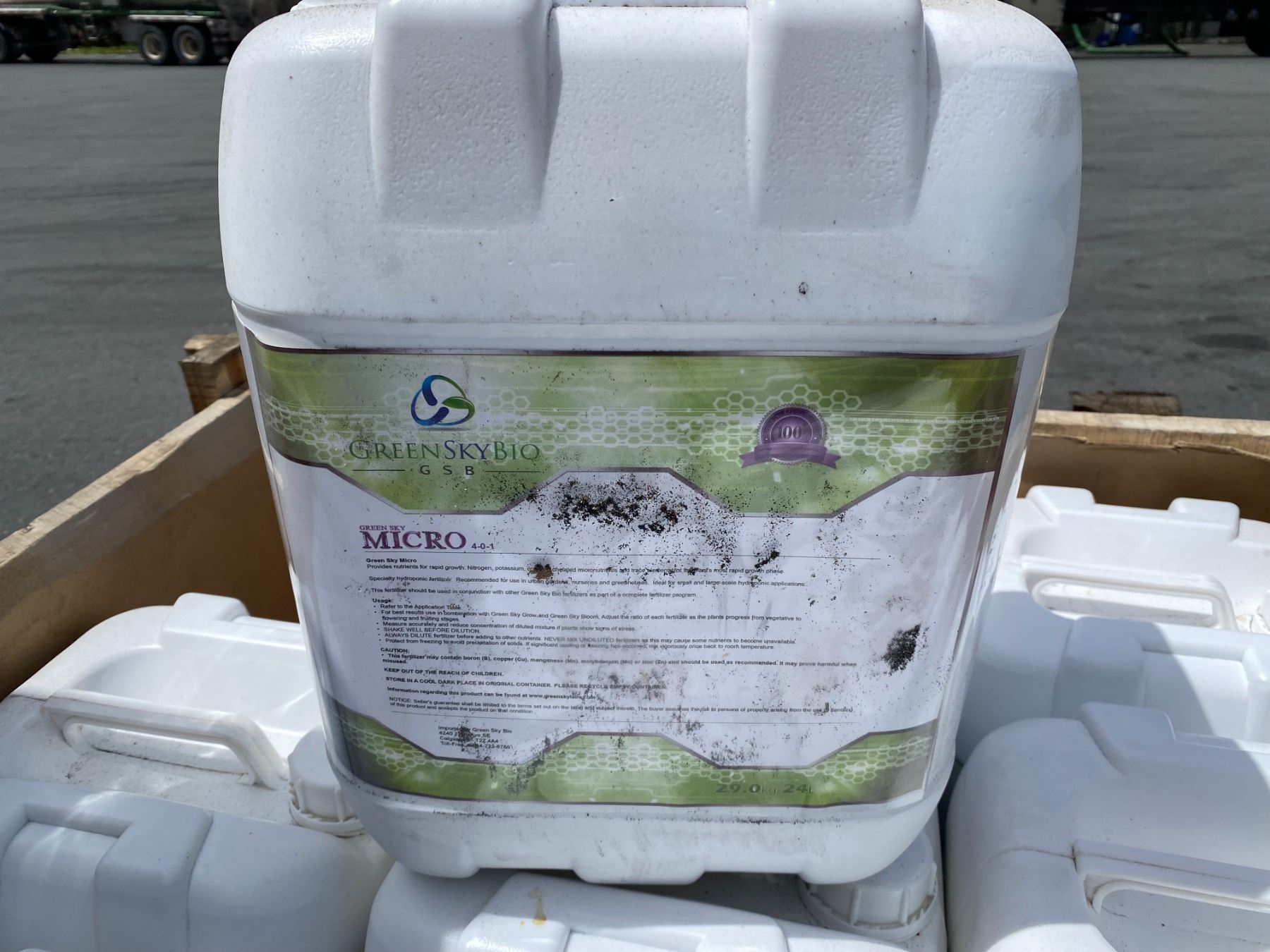 CRATE OF GREEN SKY BIO 'MICRO' FERTILIZER, 24 X 24 LITRE JUGS, TOTAL OF 576 LITRES 'MICRO' DELIVERS THE CARE NUTRIENTS OF NITROGEN, POTASSIUM, CALCIUM, MICRONUTRIENTS AND TRACE ELEMENTS YOUR PLANTS NEED FOR RAPID GROWTH.