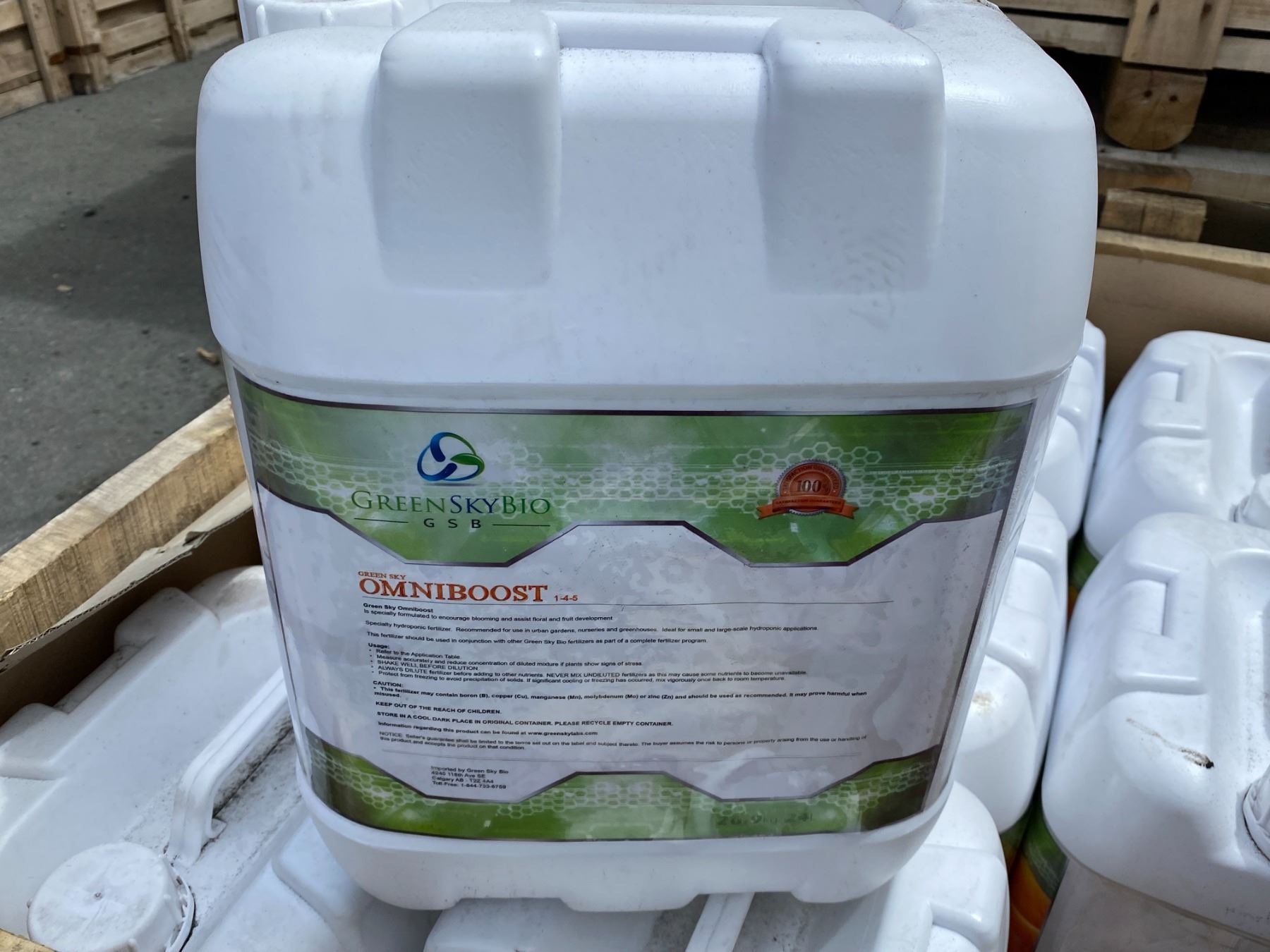 CRATE OF GREEN SKY BIO 'OMNIBOOST' FERTILIZER, 24 X 24 LITRE JUGS, TOTAL OF 576 LITRES.