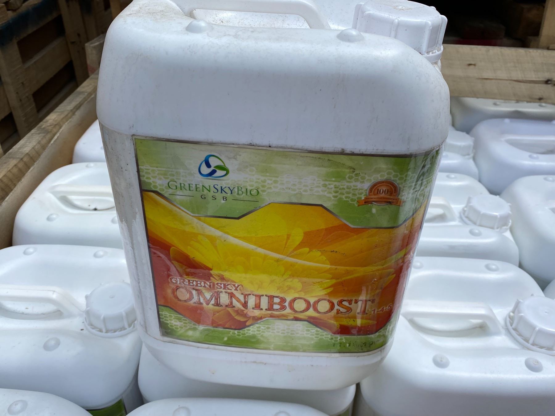 CRATE OF GREEN SKY BIO 'OMNIBOOST' FERTILIZER, 60 X 10 LITRE JUGS, TOTAL OF 600 LITRES.