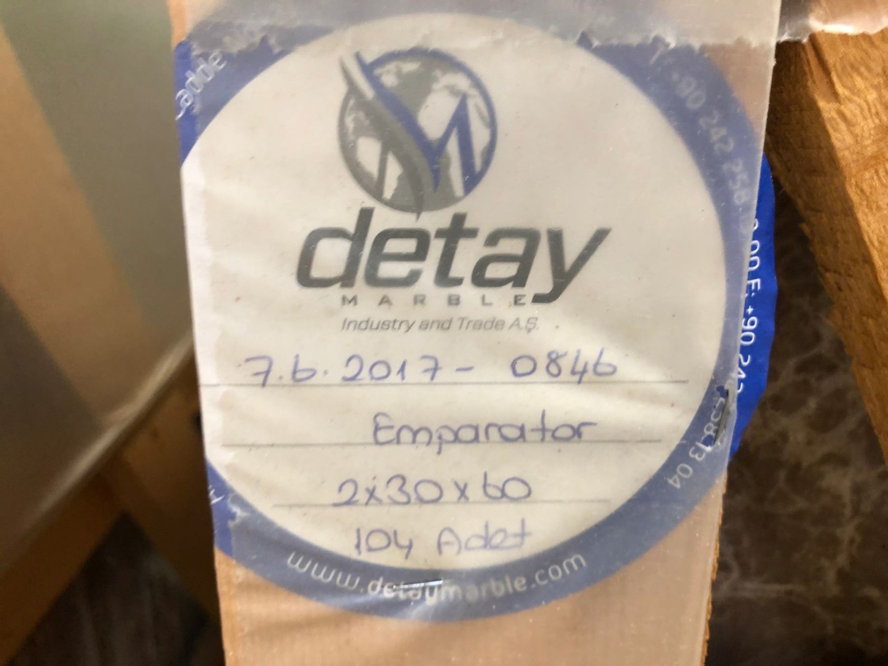 CRATE OF NATURAL MARBLE TILES, 1' X 2', 104 TILES, 208 SQ FT TOTAL