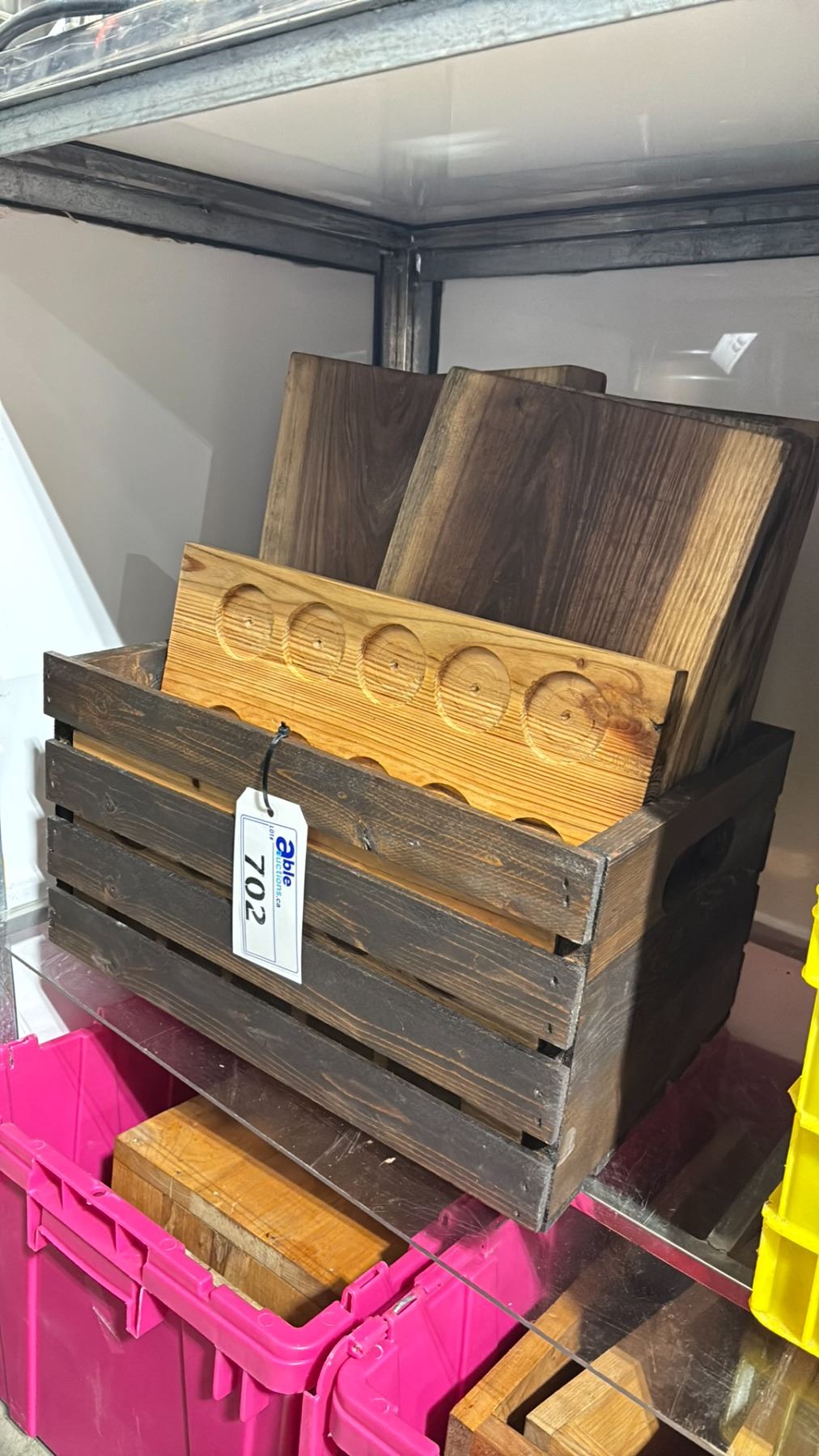 CRATE OF NATURAL WOOD FLIGHT BOARDS & NATURAL WOOD CUTTING BOARDS *CRATE INCLUDED*