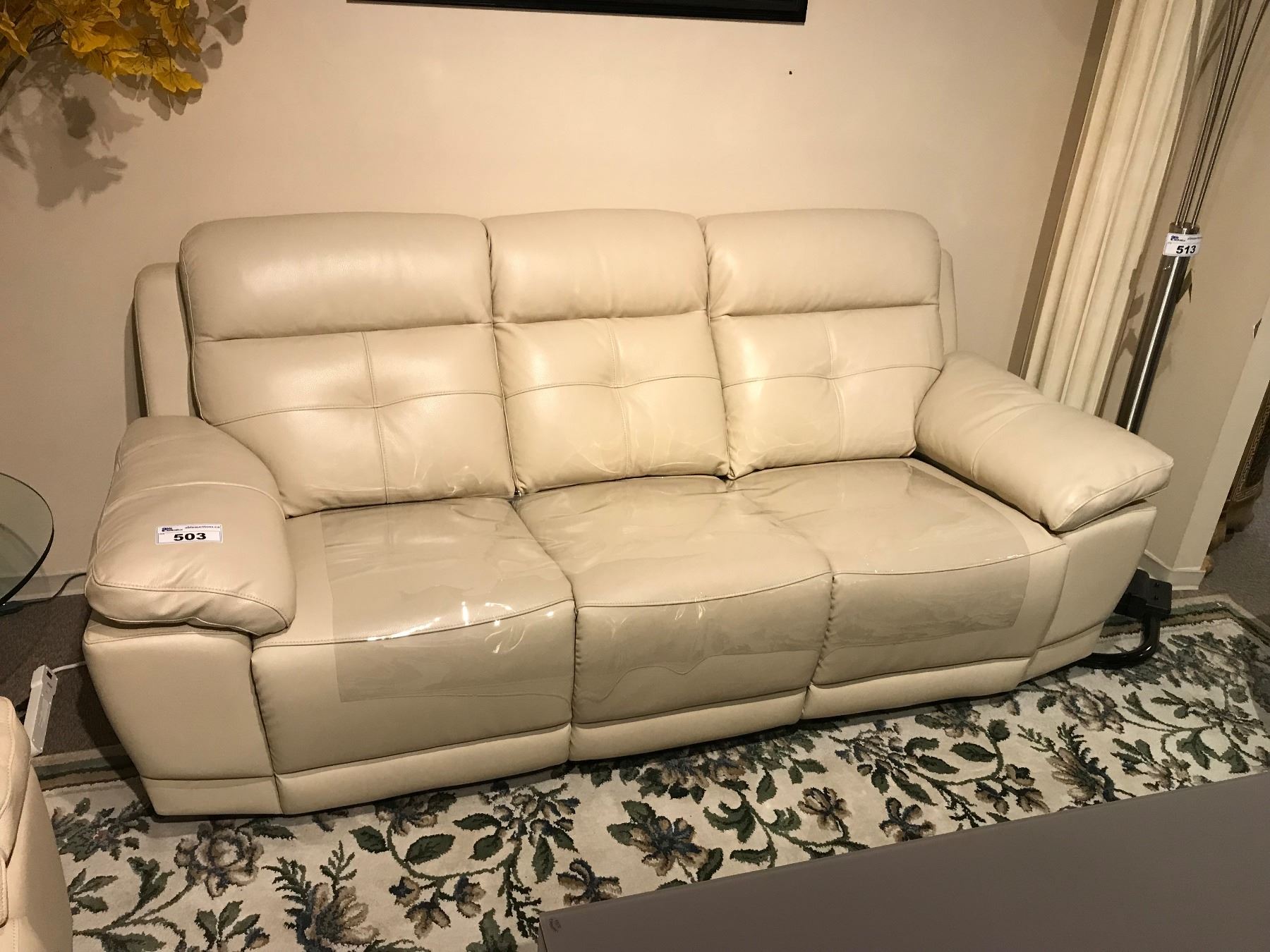 CREAM 3 SEAT LEATHER POWER RECLINING SOFA & LOVE SEAT SET