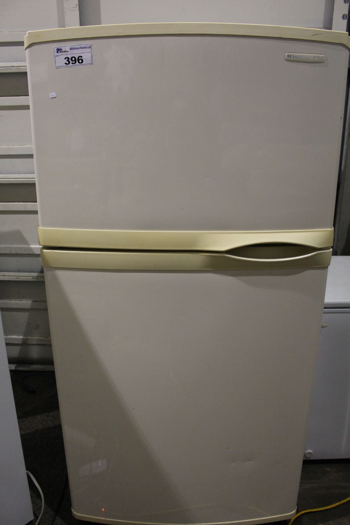CREAM COLORED KITCHENAID FRIDGE WITH BOTTOM FREEZER