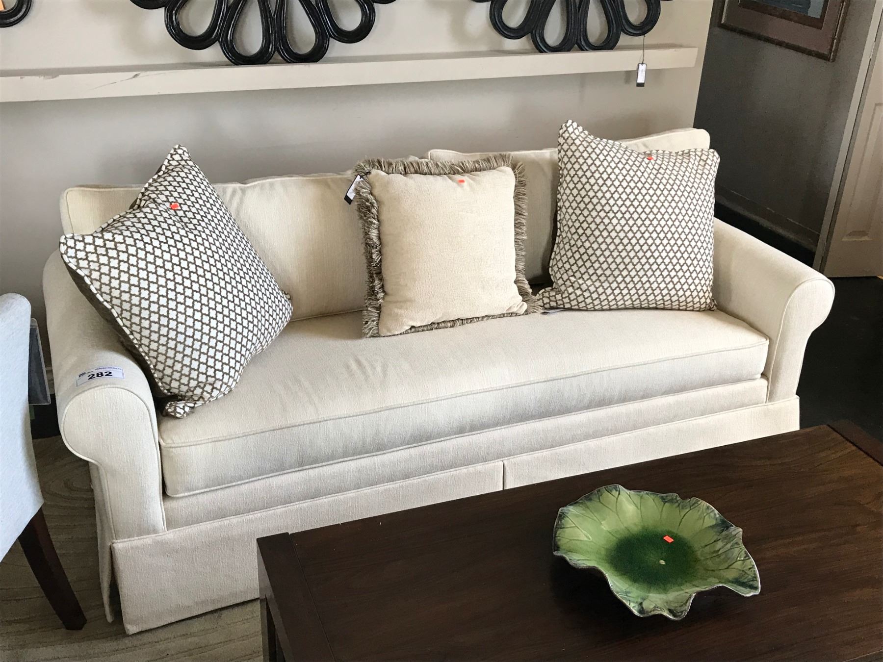 CREAM FABRIC 3 SEAT SOFA WITH THROW PILLOWS