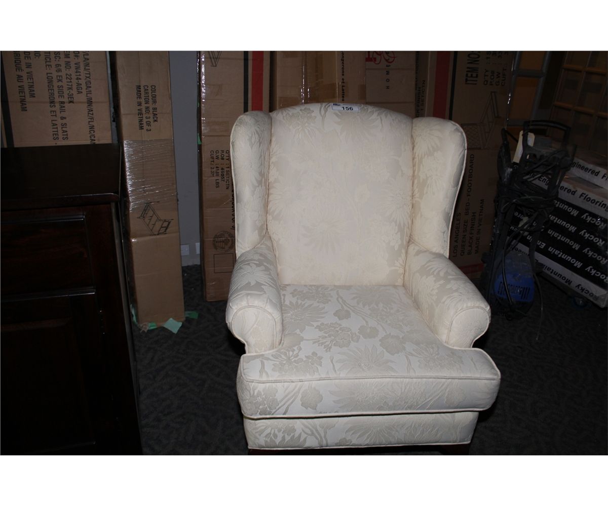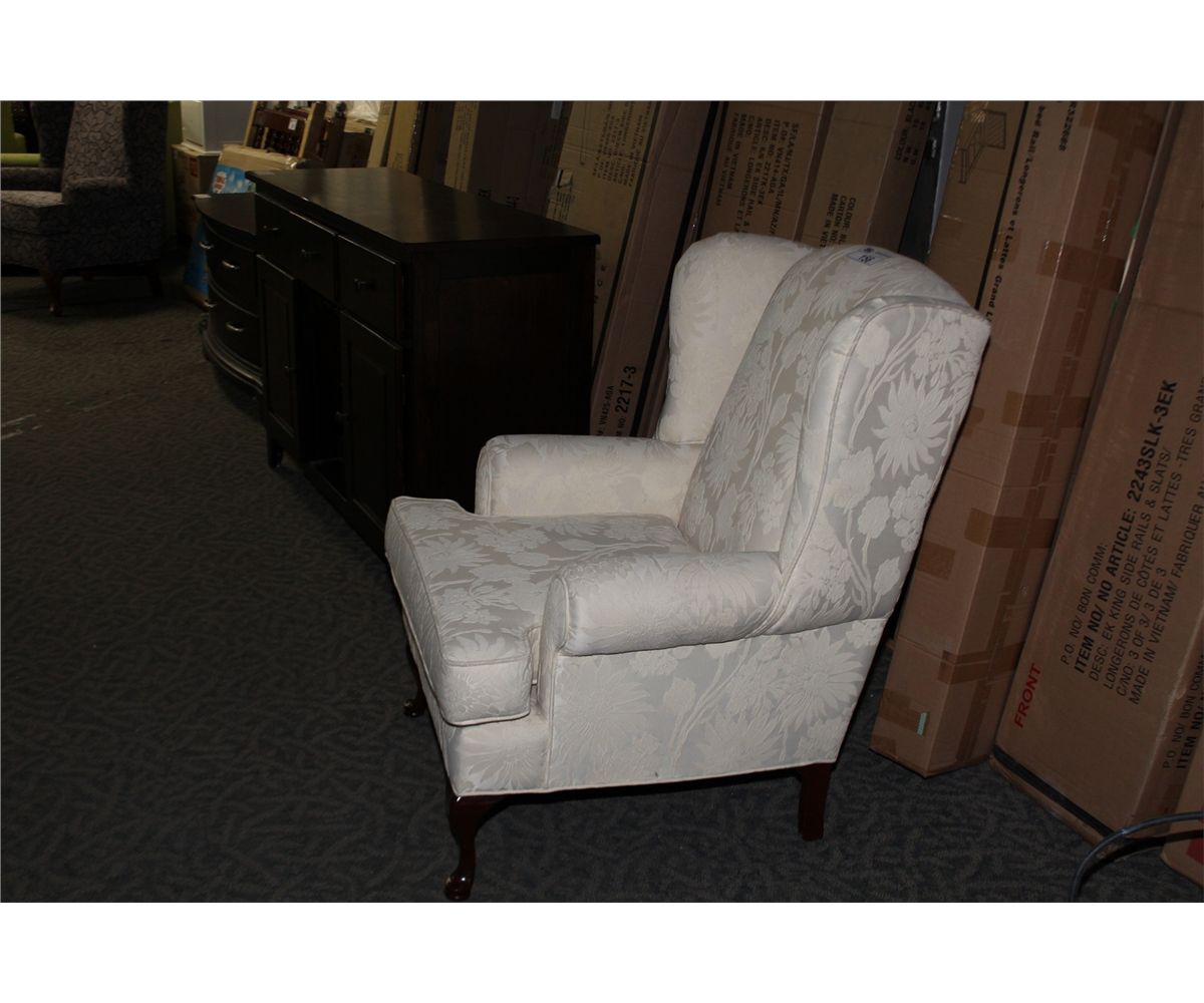 CREAM FLORAL PRINT WINGBACK SIDE CHAIR