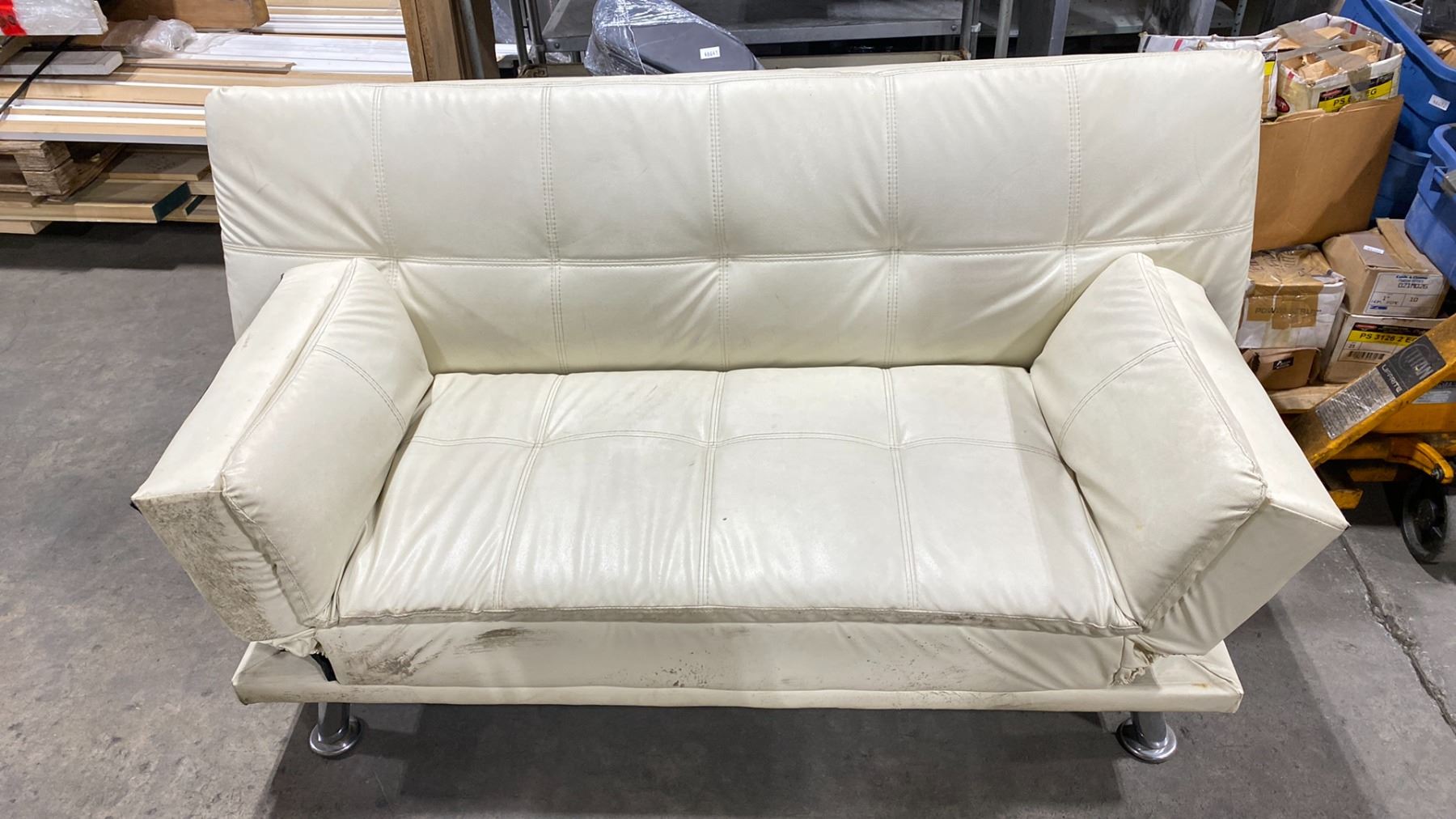 CREAM LEATHER LOOK 2 SEATER ADJUSTABLE FUTON COUCH
