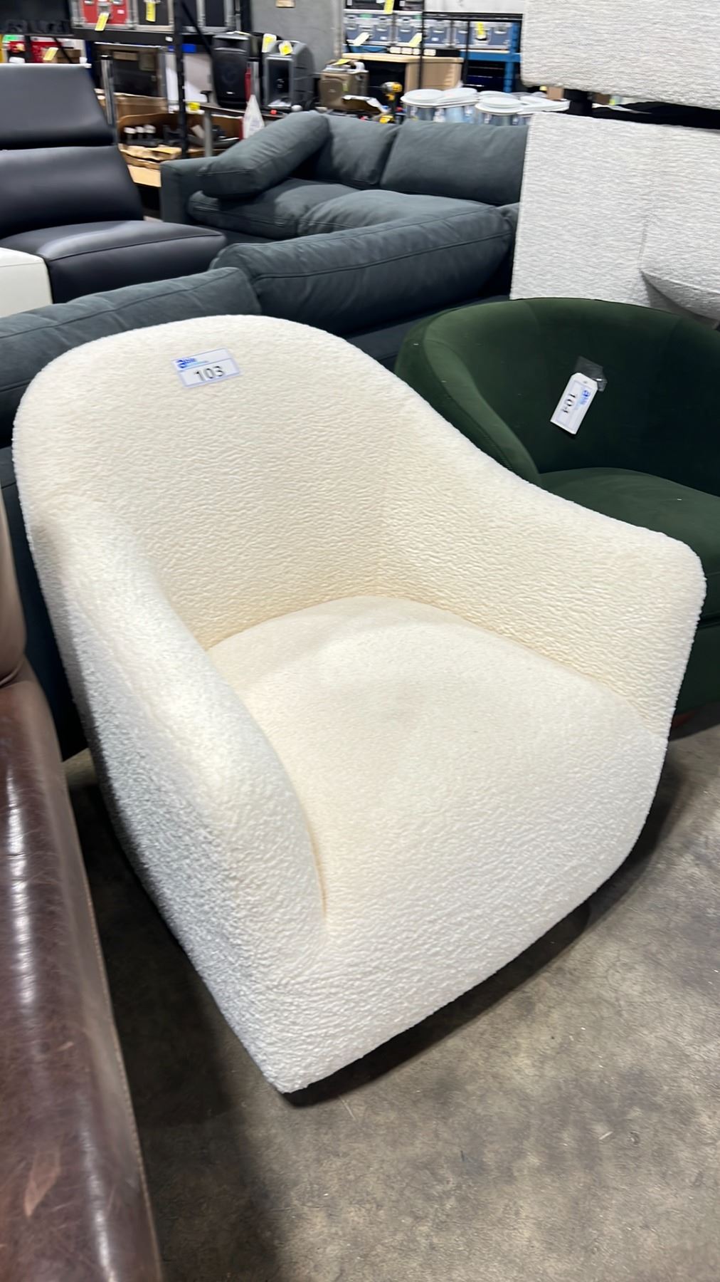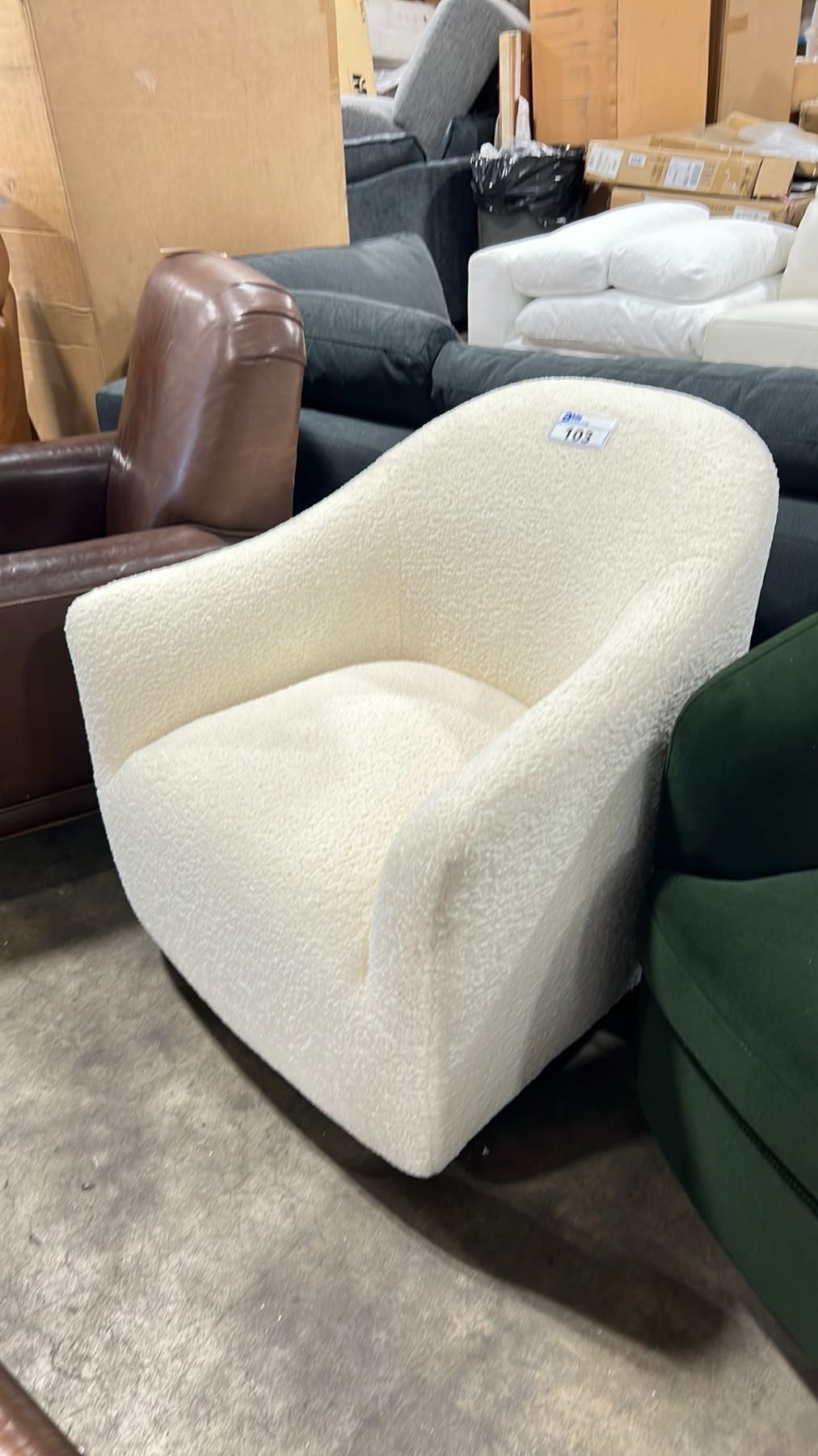 CREAM TUFTED FABRIC MODERN SWIVEL TUB STYLE ACCENT CHAIR