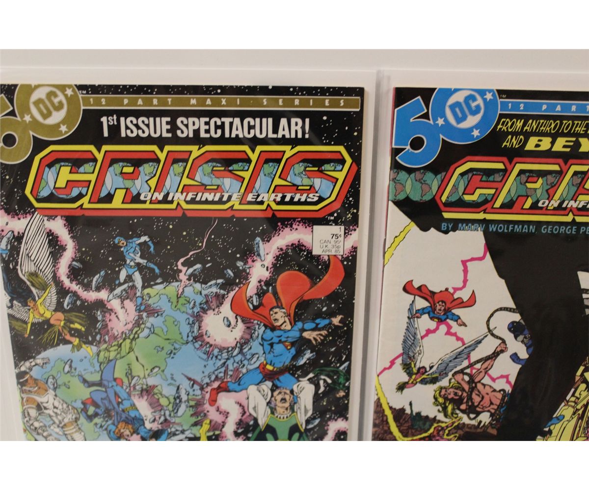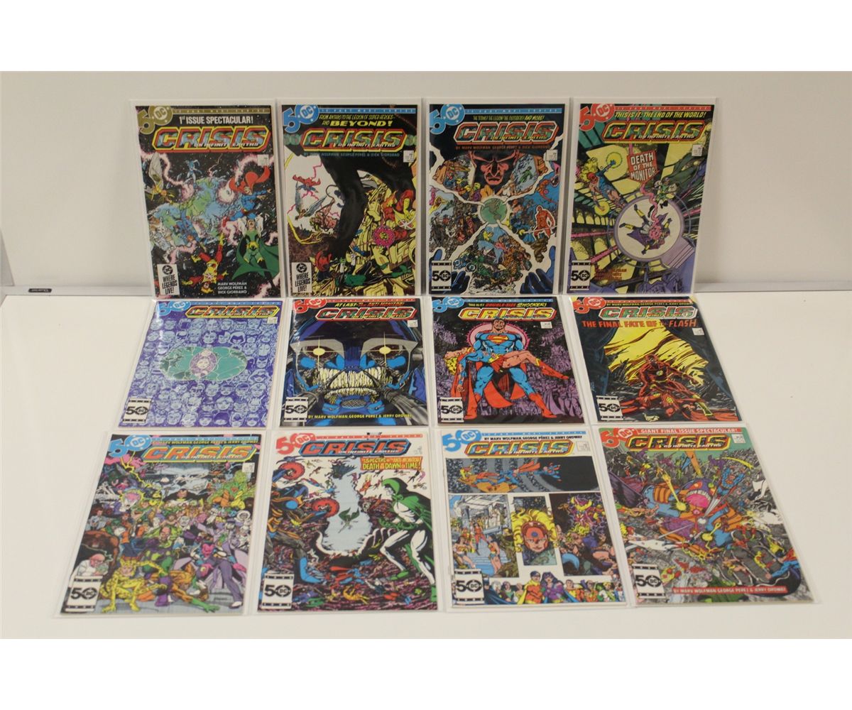 CRISIS ON INFINITE EARTHS #1-12 (1985) DC'S CLASSIC SERIES. INCLUDES THE CRISIS CROSS OVER INDEX. 13 BOOKS TOTAL, HIGH GRADE. 2013 OVERSTREET TOP END GUIDE VALUE OF $175